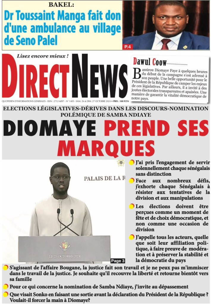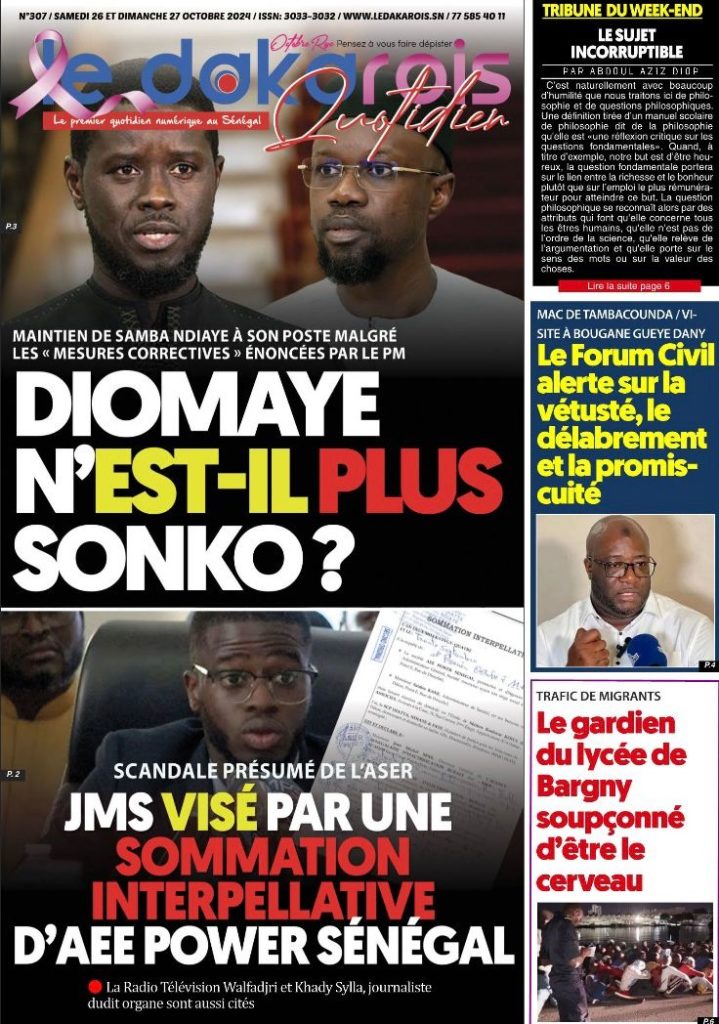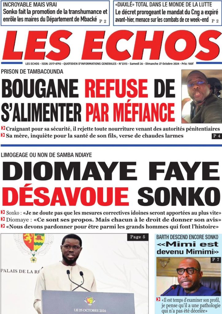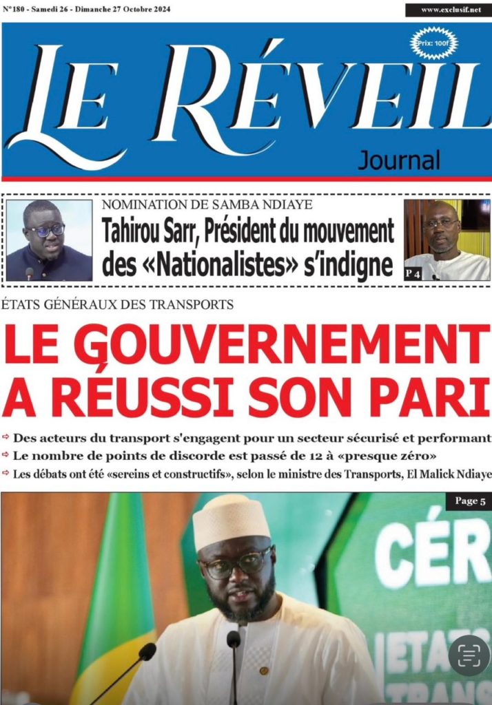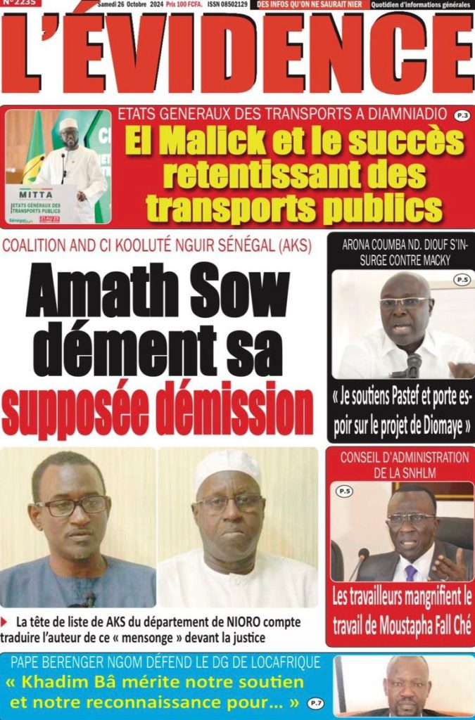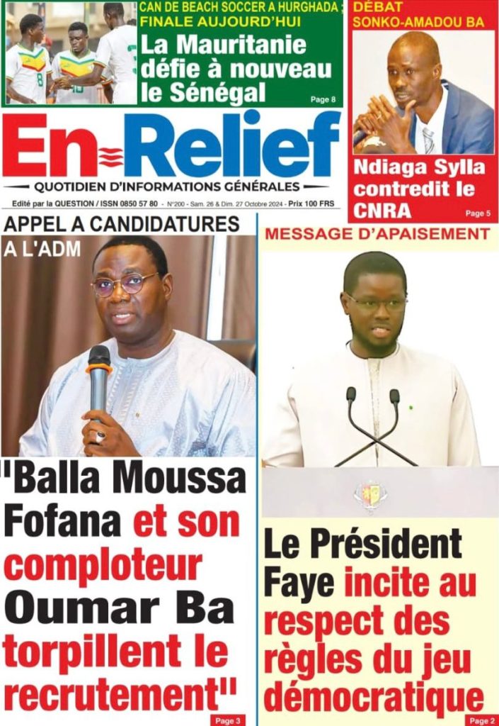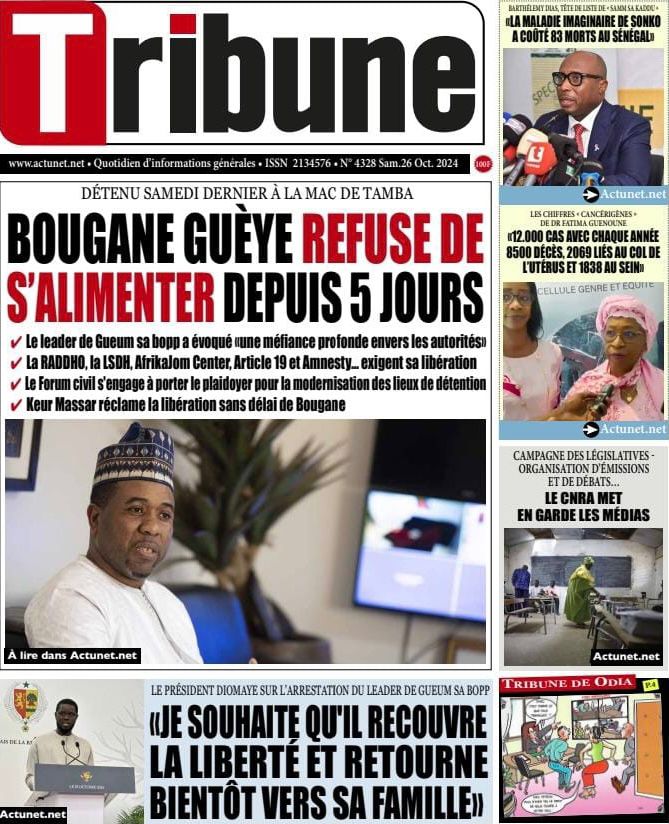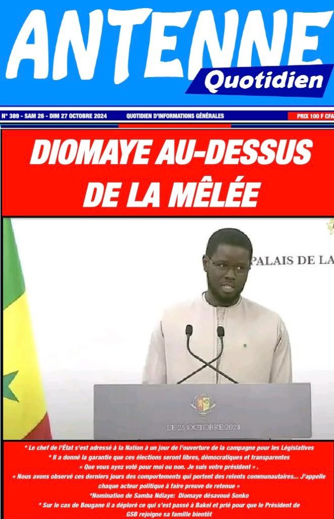 " /> La Une des Quotidiens Nationaux du 26 Octobre 2024 Publié le 26 Oct, 2024 À DÉCOUVRIR Les Unes des quotidiens nationaux du 05 novembre 2025 5 Nov, 2025 La Rédaction de SenCaféActu Partager ->