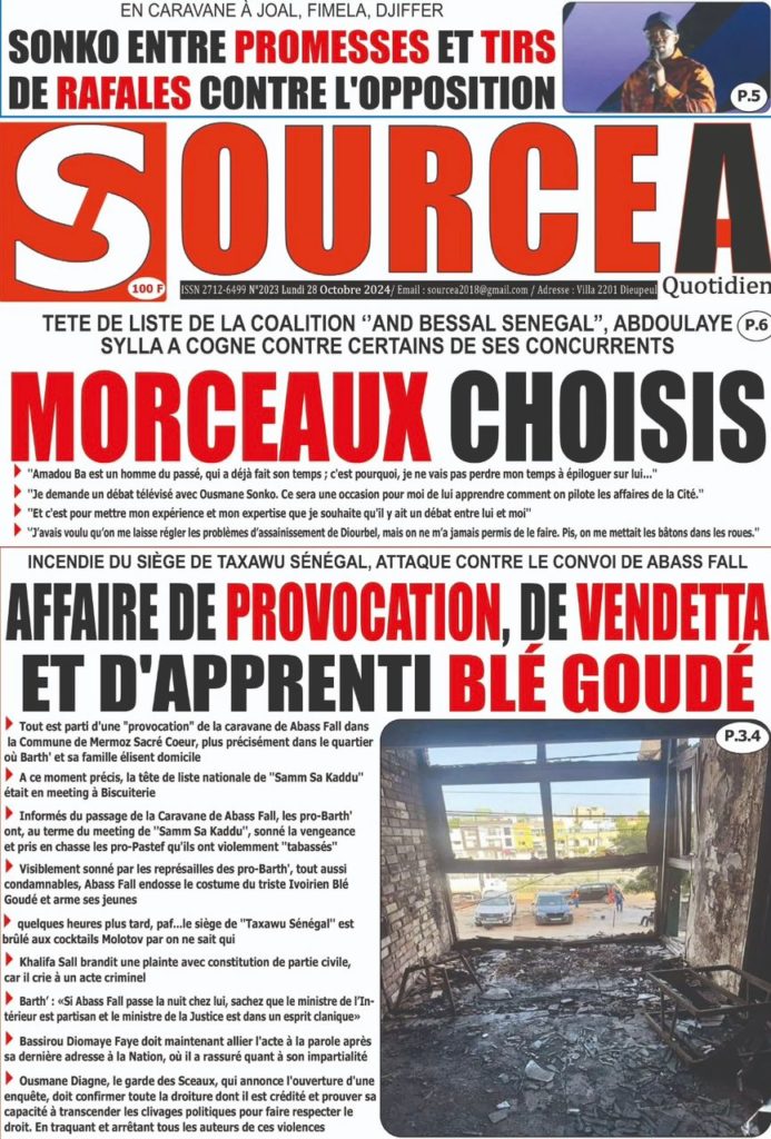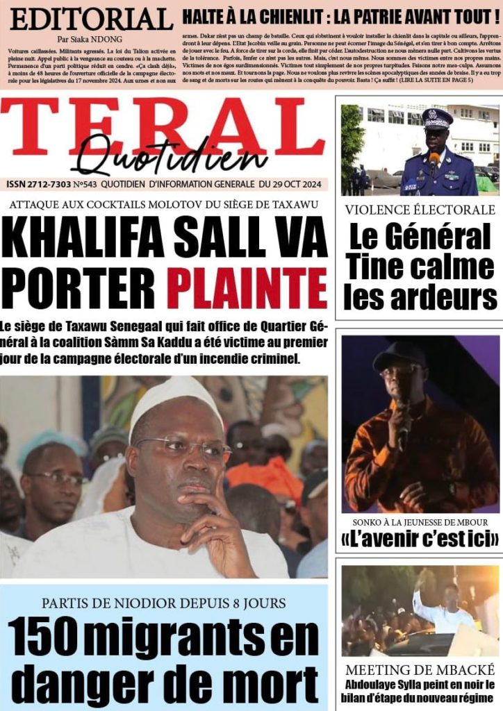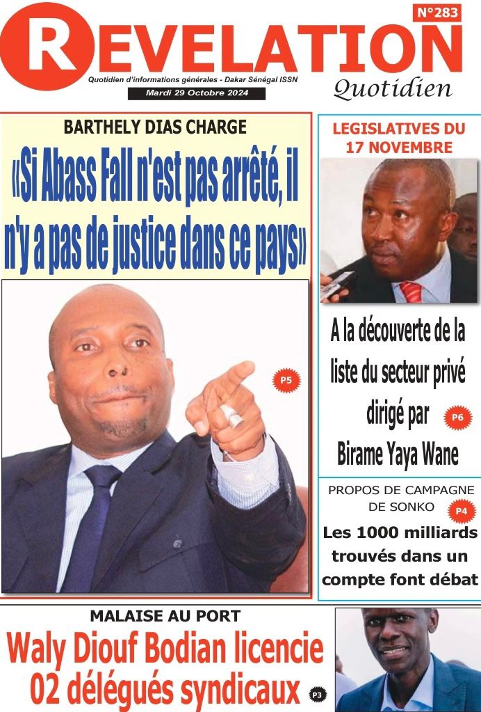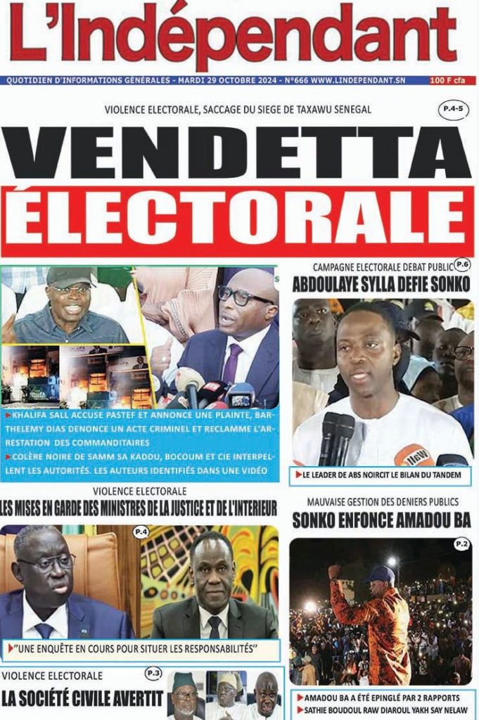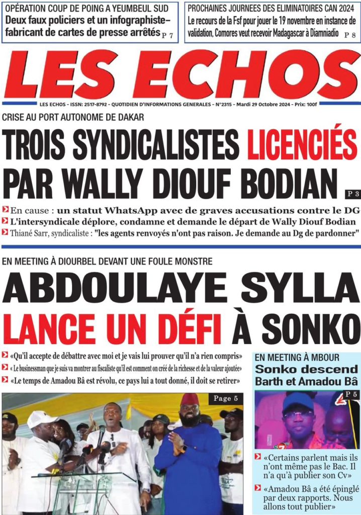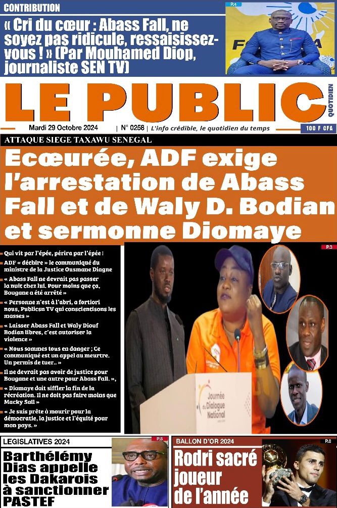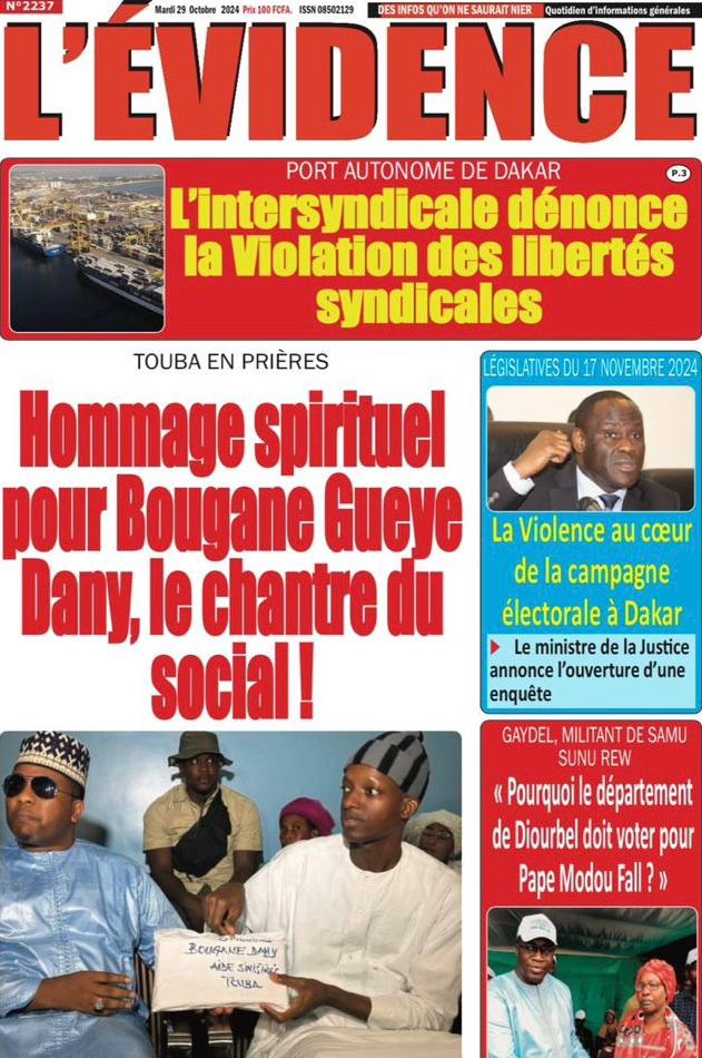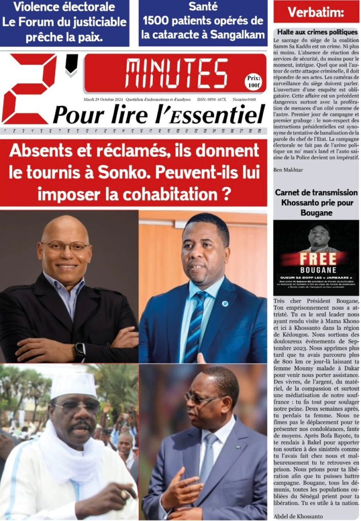 " /> La Une des Quotidiens Nationaux du 29 Octobre 2024 Publié le 29 Oct, 2024 À DÉCOUVRIR Les Unes des quotidiens nationaux du 03 novembre 2025 3 Nov, 2025 La Rédaction de SenCaféActu Partager ->