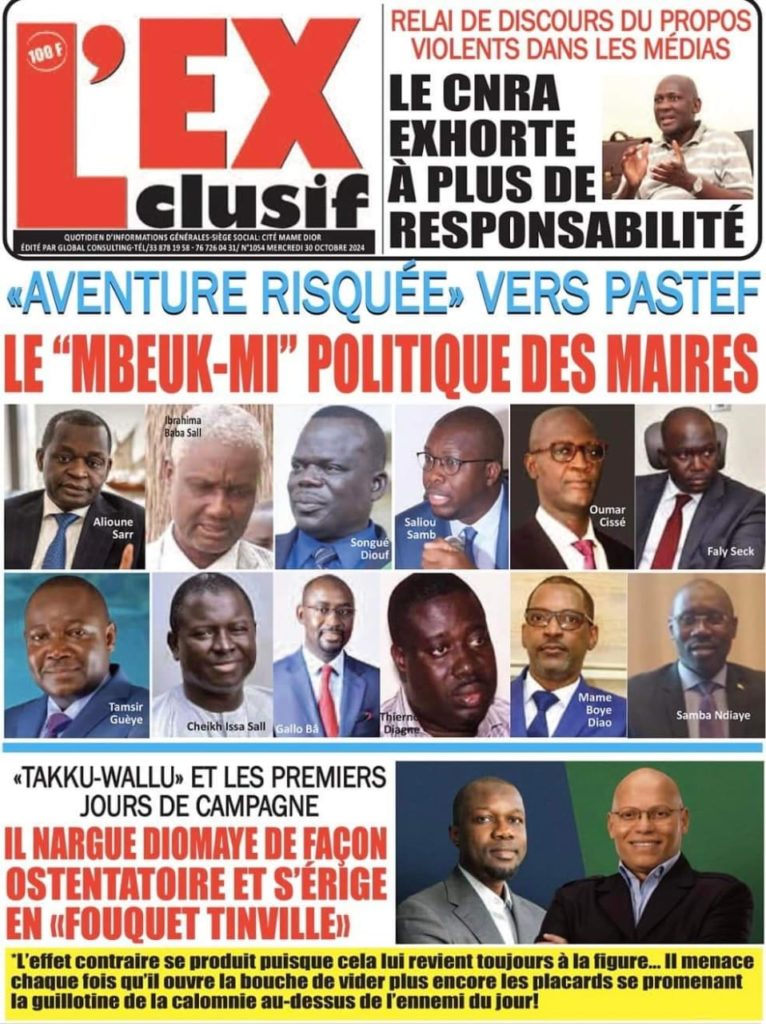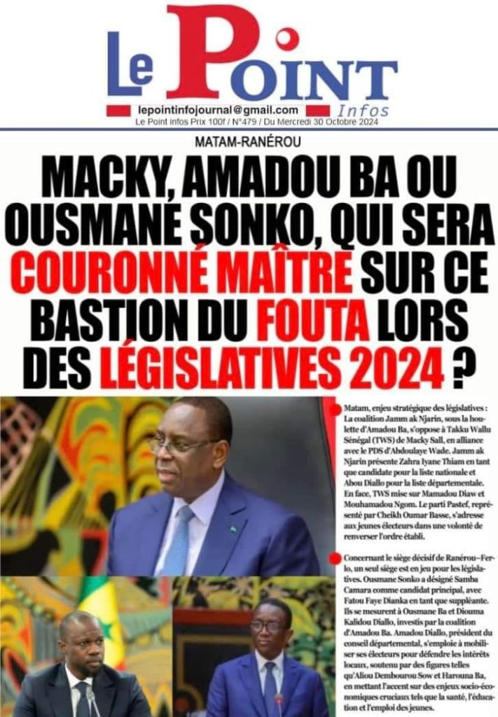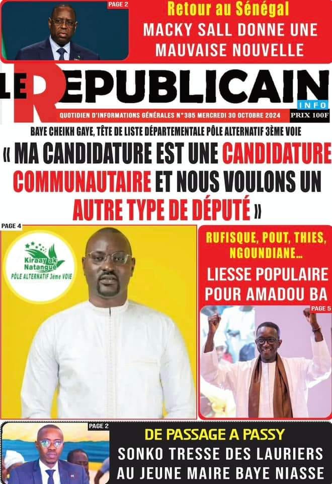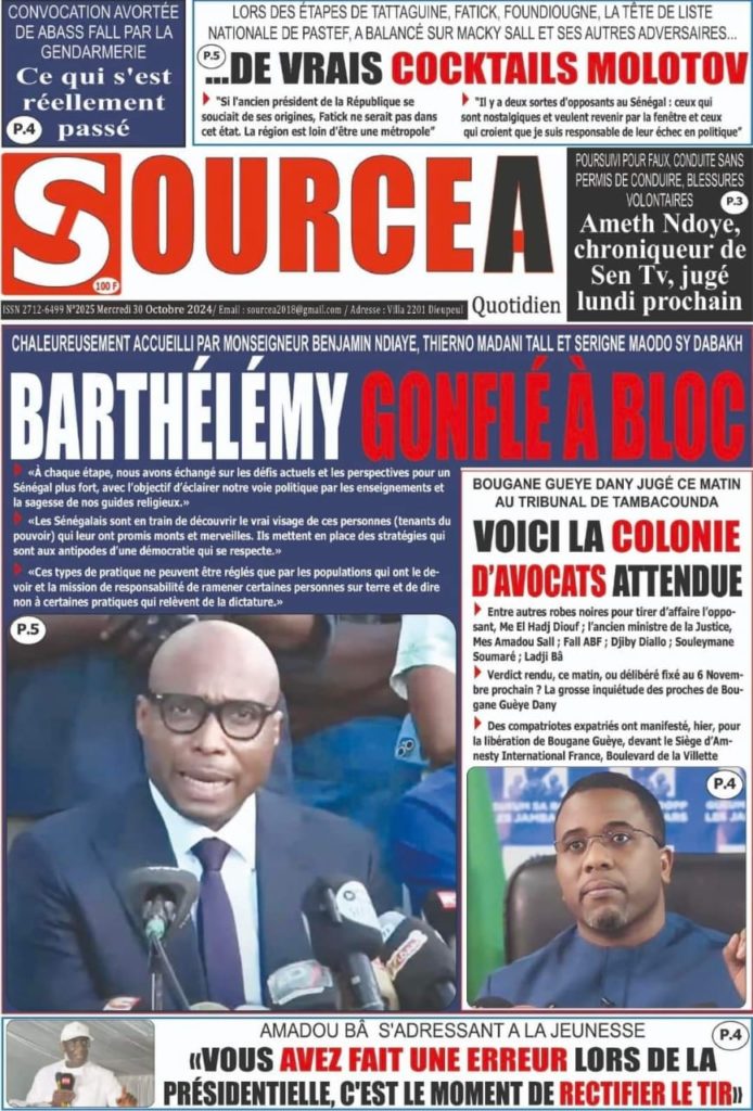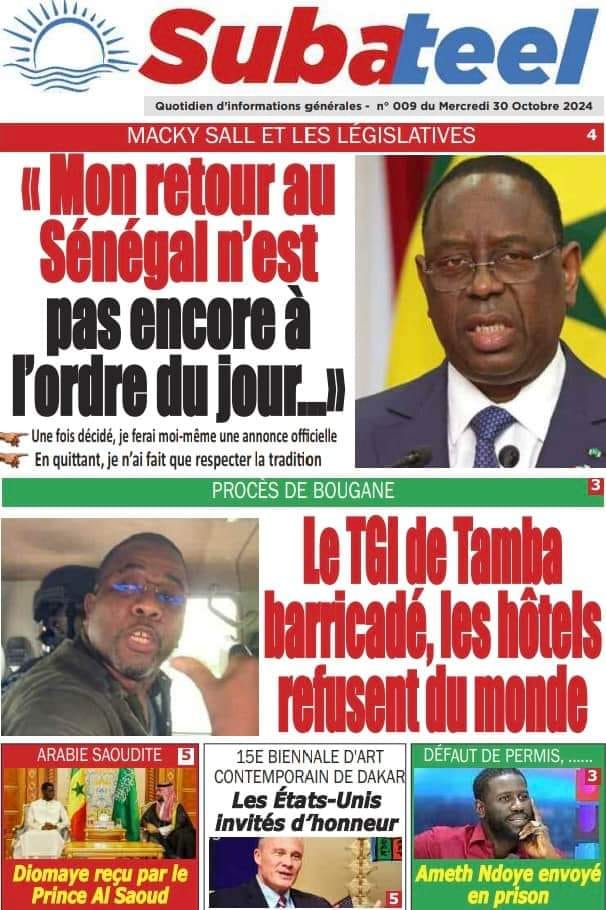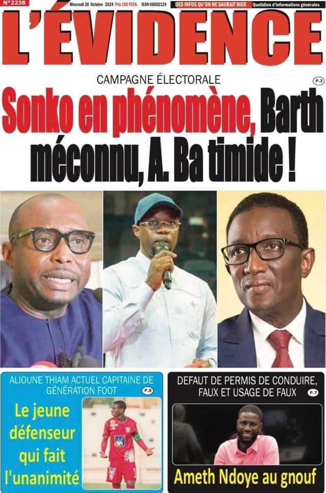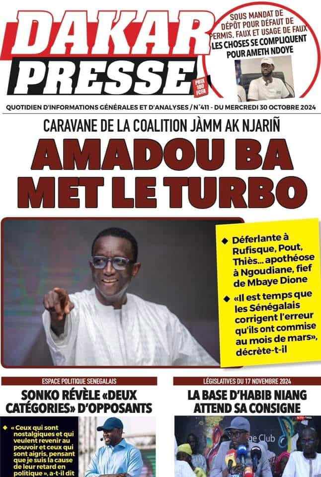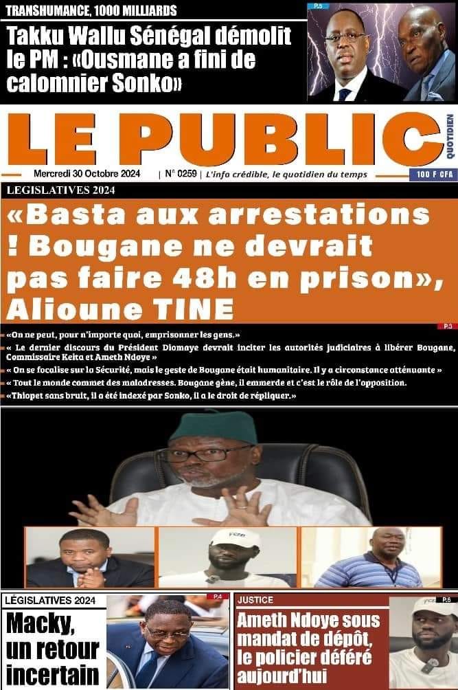 " /> La Une des Quotidiens Nationaux du 30 Octobre 2024 Publié le 30 Oct, 2024 À DÉCOUVRIR Les Unes des quotidiens nationaux du 03 novembre 2025 3 Nov, 2025 La Rédaction de SenCaféActu Partager ->