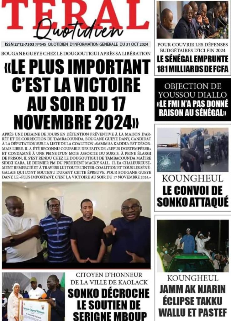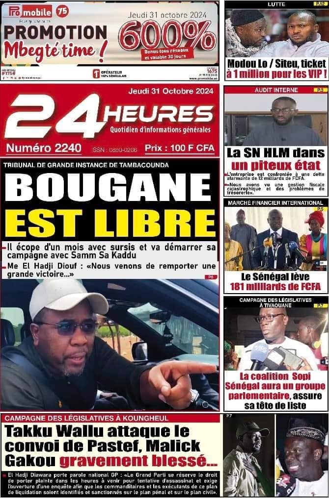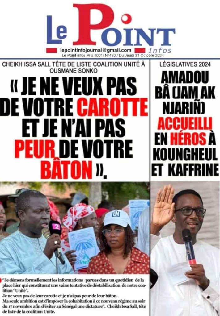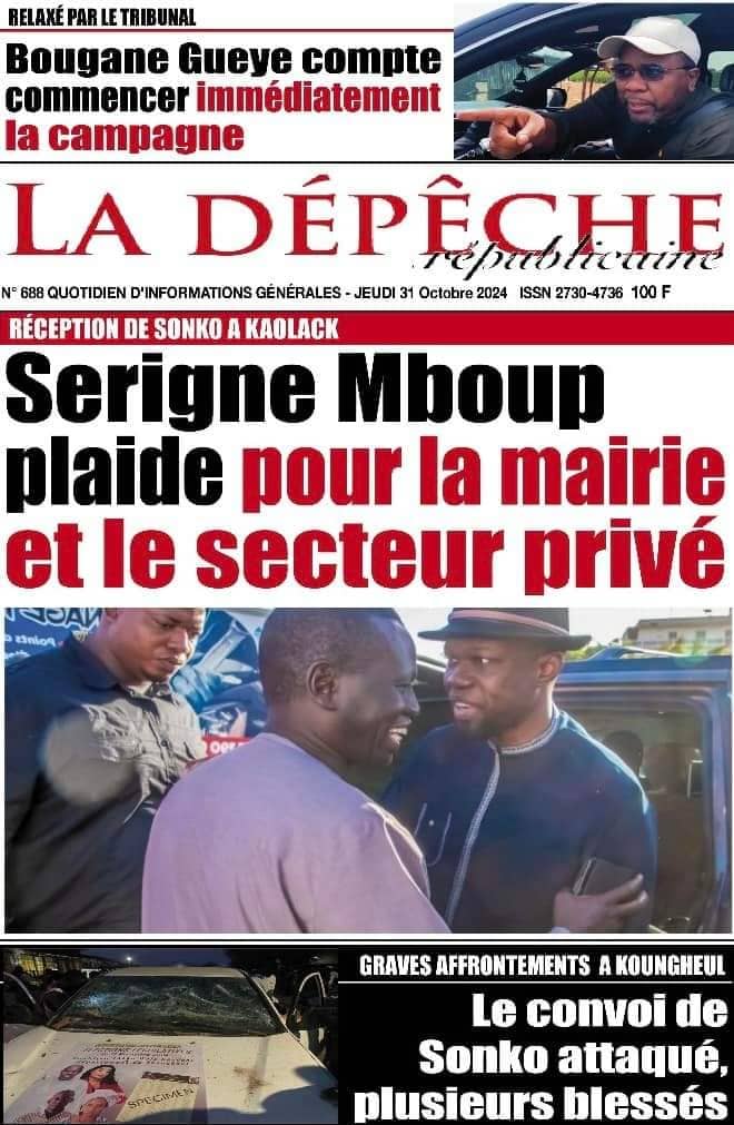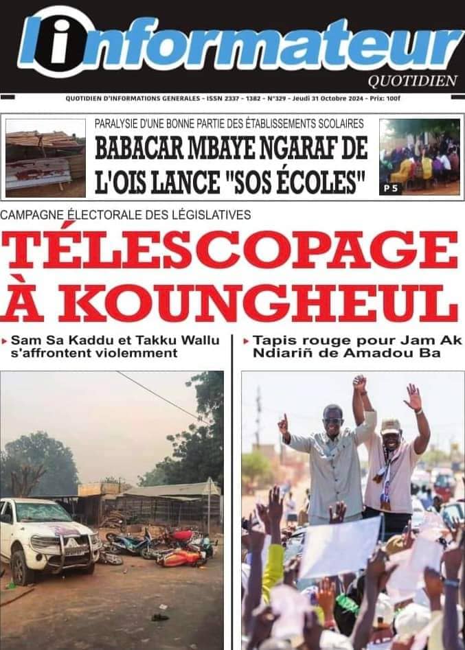 " /> La Une des Quotidiens Nationaux du 31 Octobre 2024 Publié le 31 Oct, 2024 À DÉCOUVRIR Les Unes des quotidiens nationaux du 14 novembre 2025 14 Nov, 2025 La Rédaction de SenCaféActu Partager ->