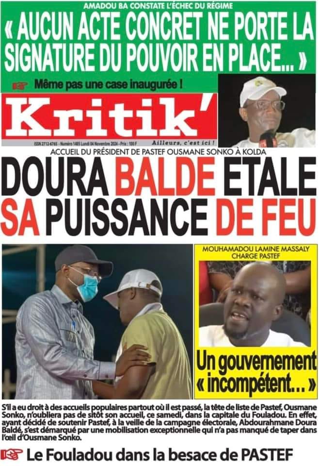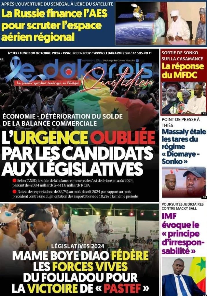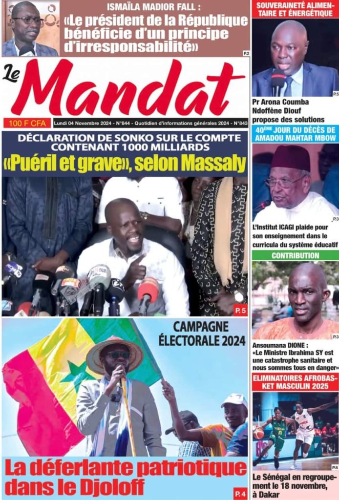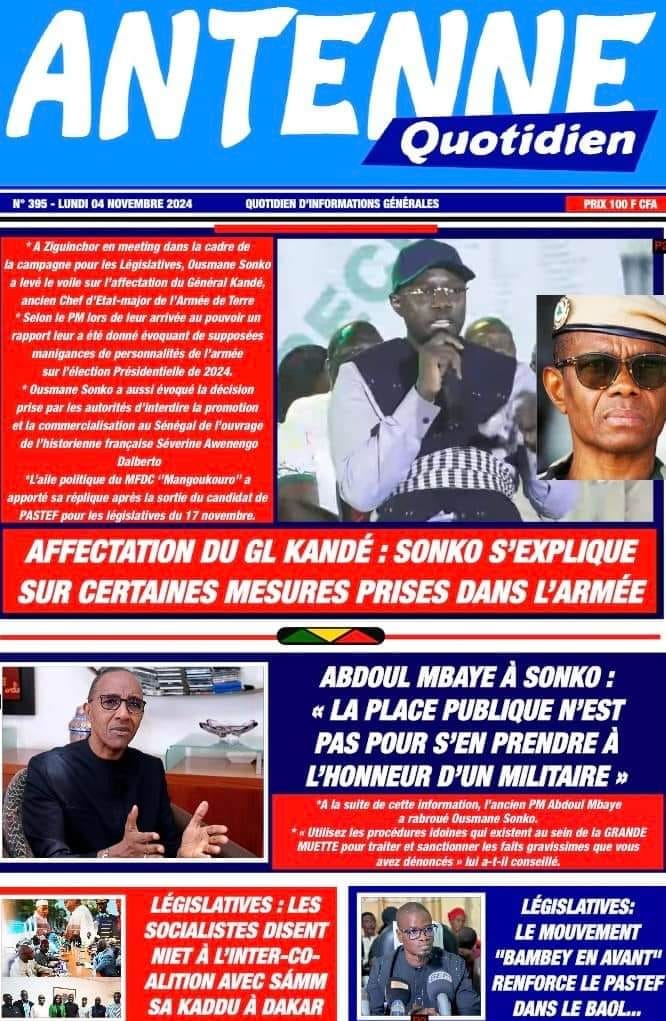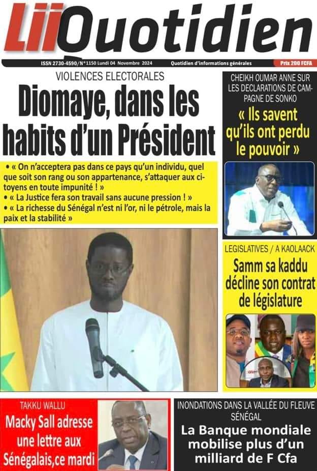 " /> La Une des Quotidiens Nationaux du 04 Novembre 2024 Publié le 4 Nov, 2024 À DÉCOUVRIR Les Unes des quotidiens nationaux du 30 octobre 2025 30 Oct, 2025 La Rédaction de SenCaféActu Partager ->