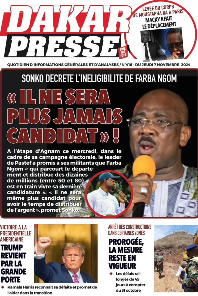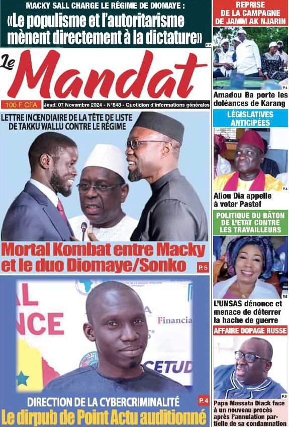 " /> La Une des Quotidiens Nationaux du 07 Novembre 2024 Publié le 7 Nov, 2024 À DÉCOUVRIR Les Unes des quotidiens nationaux du 10 novembre 2025 10 Nov, 2025 La Rédaction de SenCaféActu Partager ->