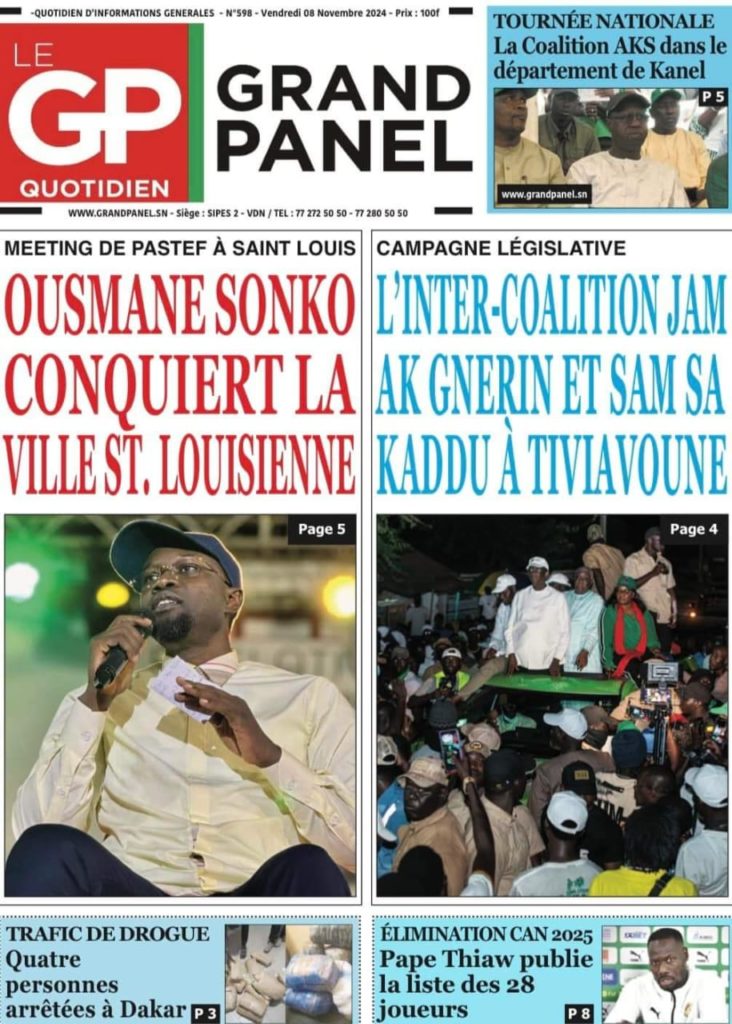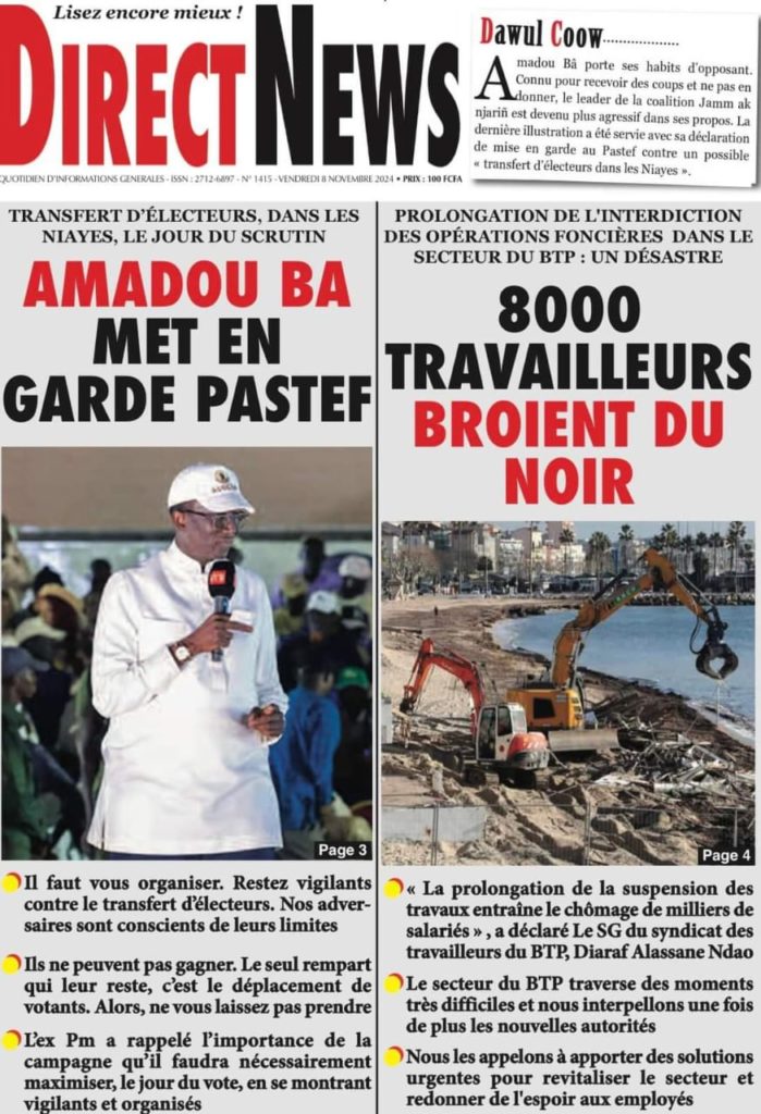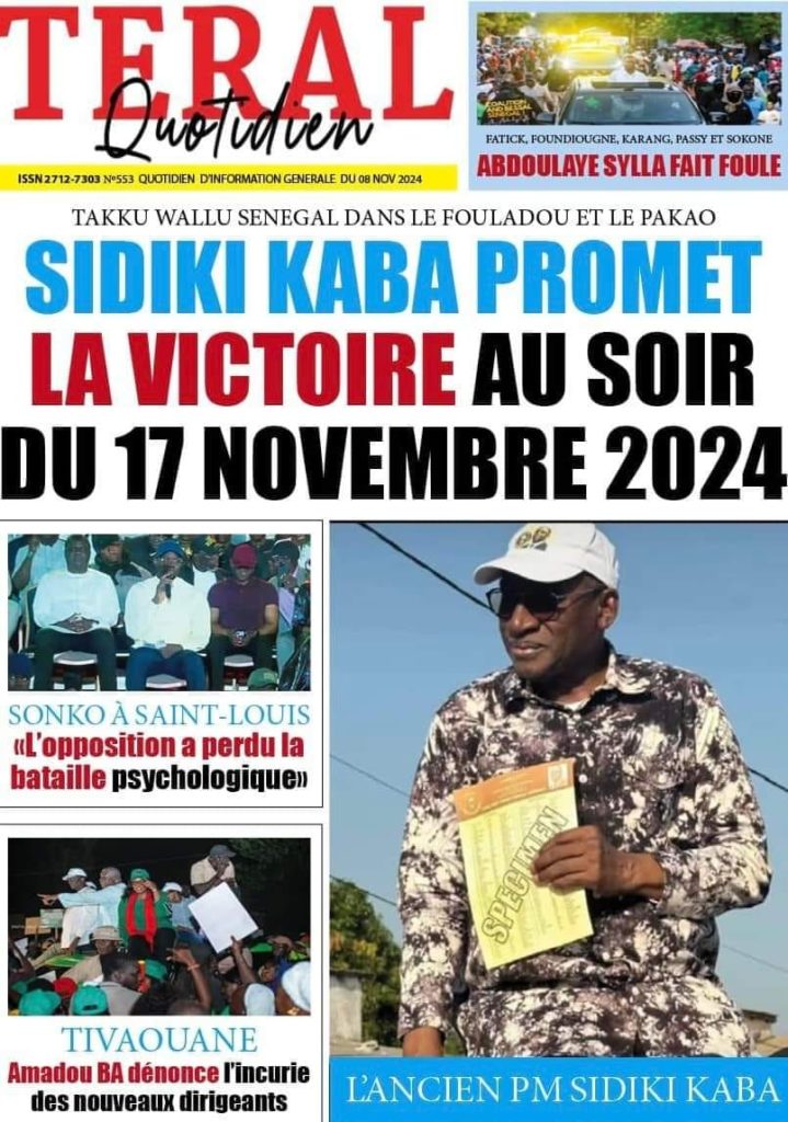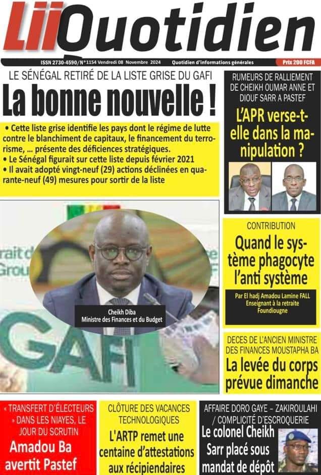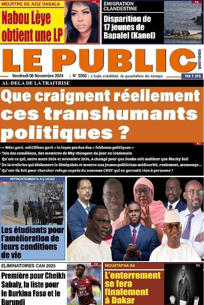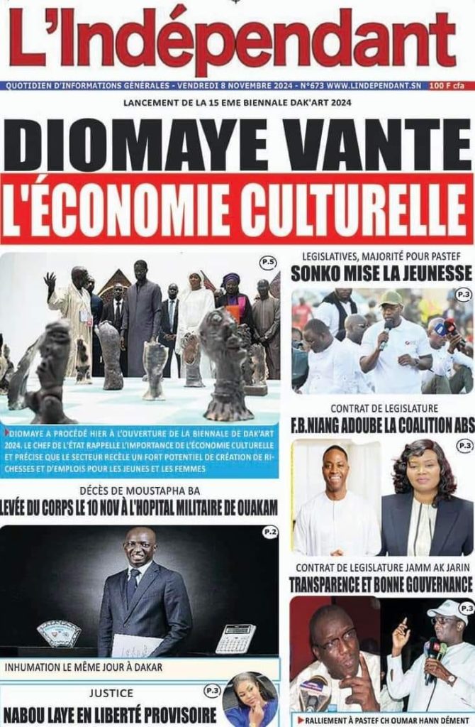 " /> La Une des Quotidiens Nationaux du 08 Novembre 2024 Publié le 8 Nov, 2024 À DÉCOUVRIR Les Unes des quotidiens nationaux du 31 octobre 2025 31 Oct, 2025 La Rédaction de SenCaféActu Partager ->