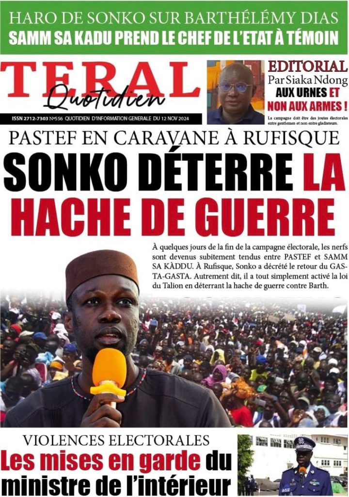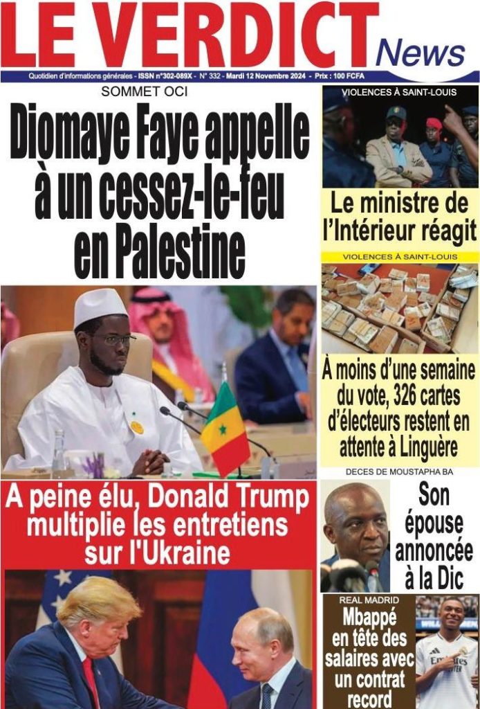 " /> La Une des Quotidiens Nationaux du 12 Novembre 2024 Publié le 12 Nov, 2024 À DÉCOUVRIR Les Unes des quotidiens nationaux du 03 novembre 2025 3 Nov, 2025 La Rédaction de SenCaféActu Partager ->