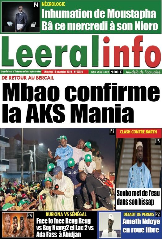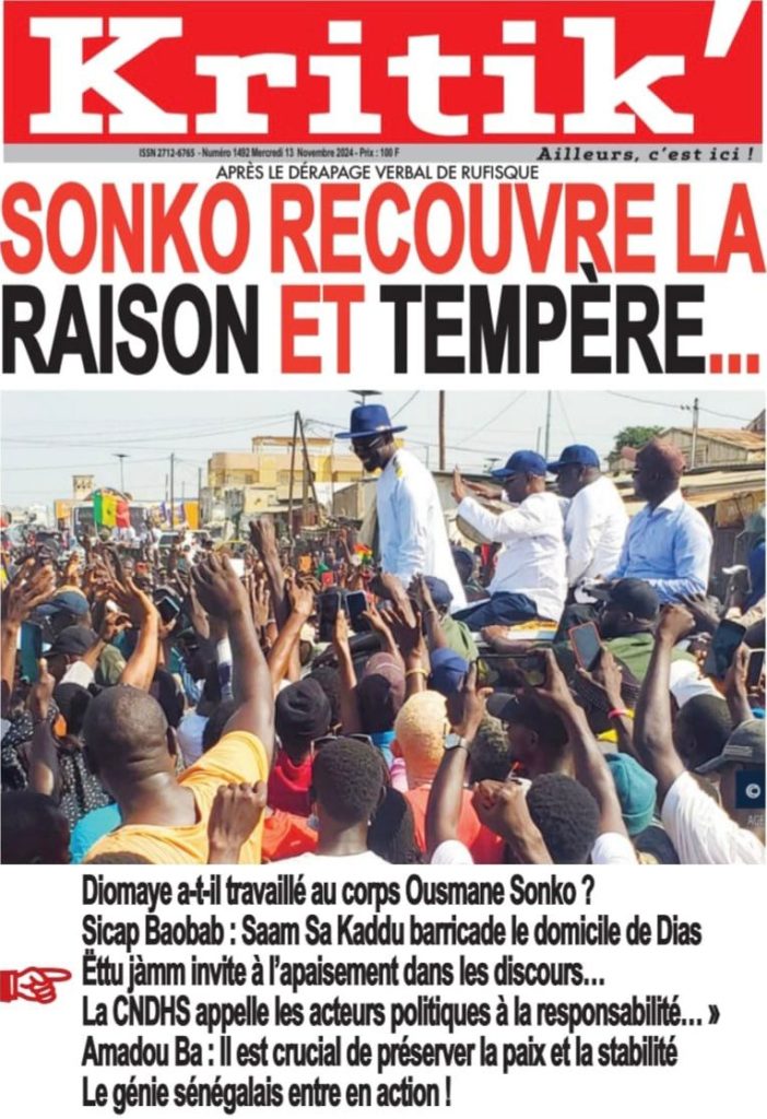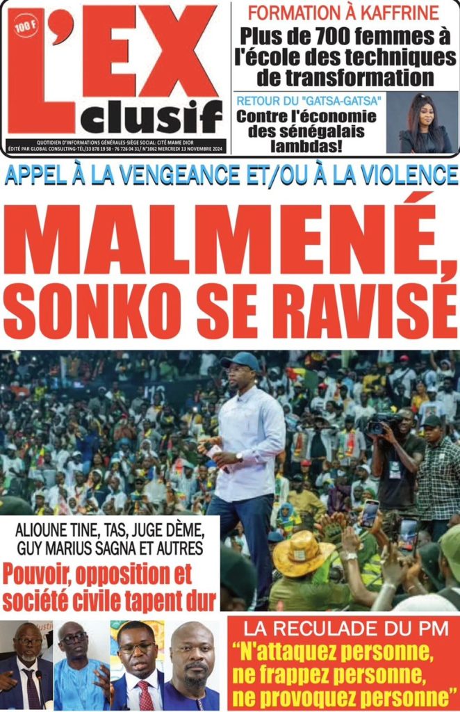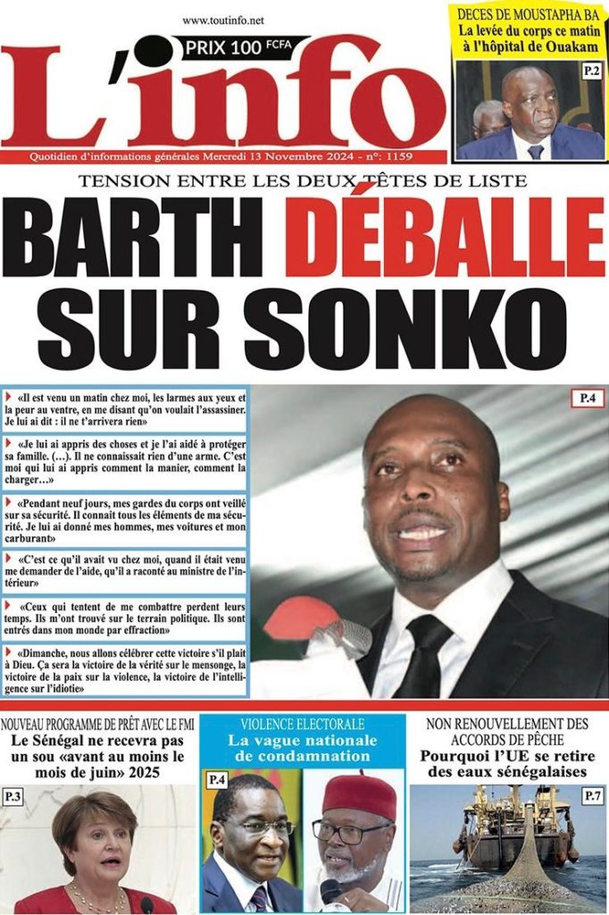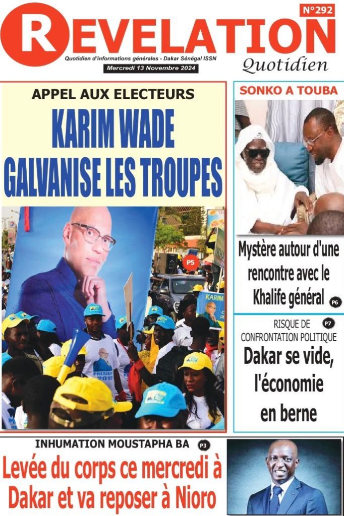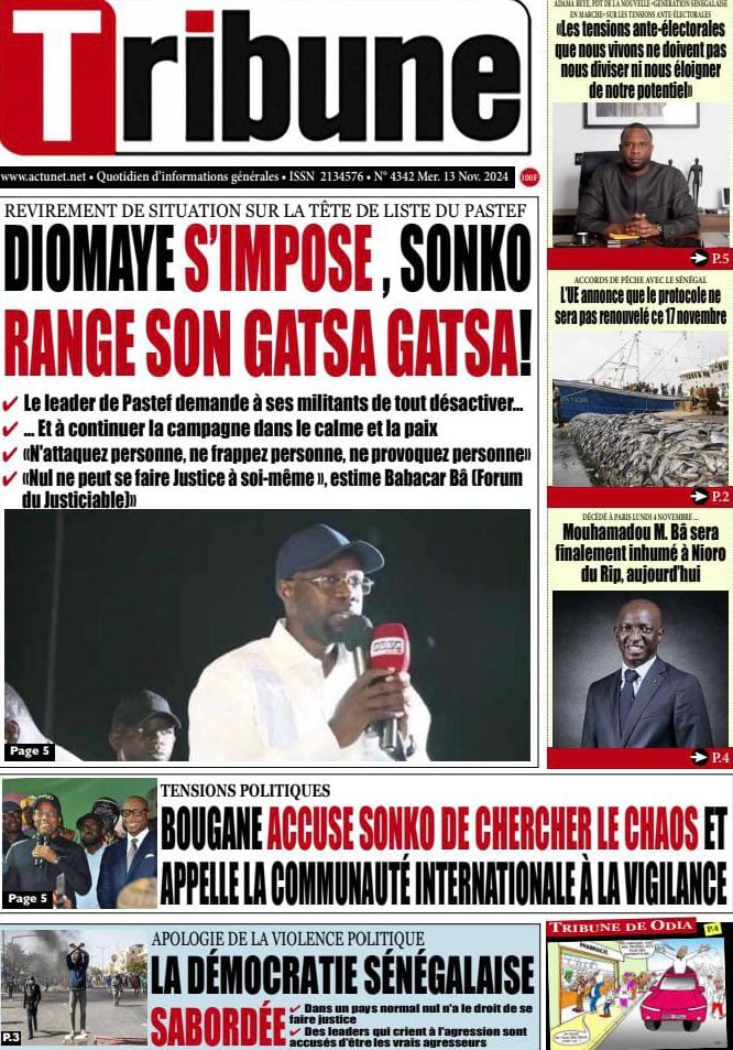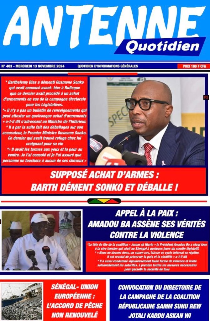 " /> La Une des Quotidiens Nationaux du 13 Novembre 2024 Publié le 13 Nov, 2024 À DÉCOUVRIR Les Unes des quotidiens nationaux du 03 novembre 2025 3 Nov, 2025 La Rédaction de SenCaféActu Partager ->