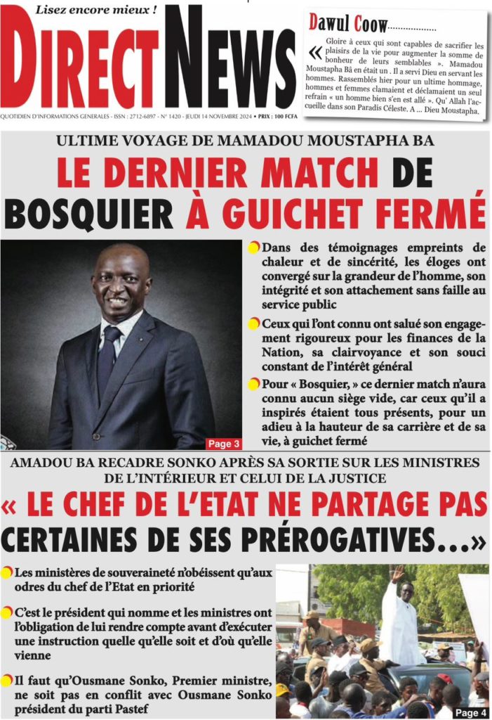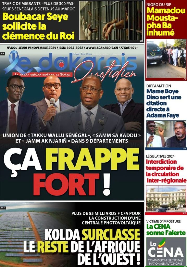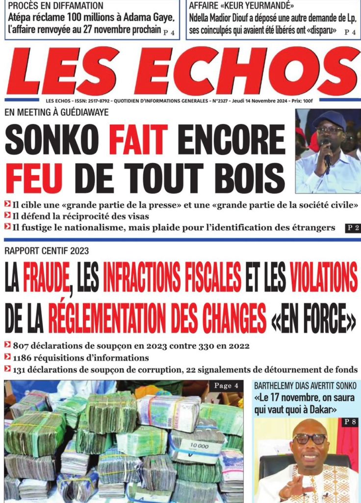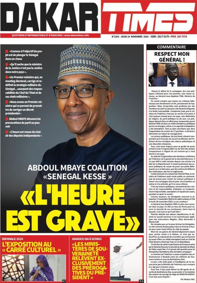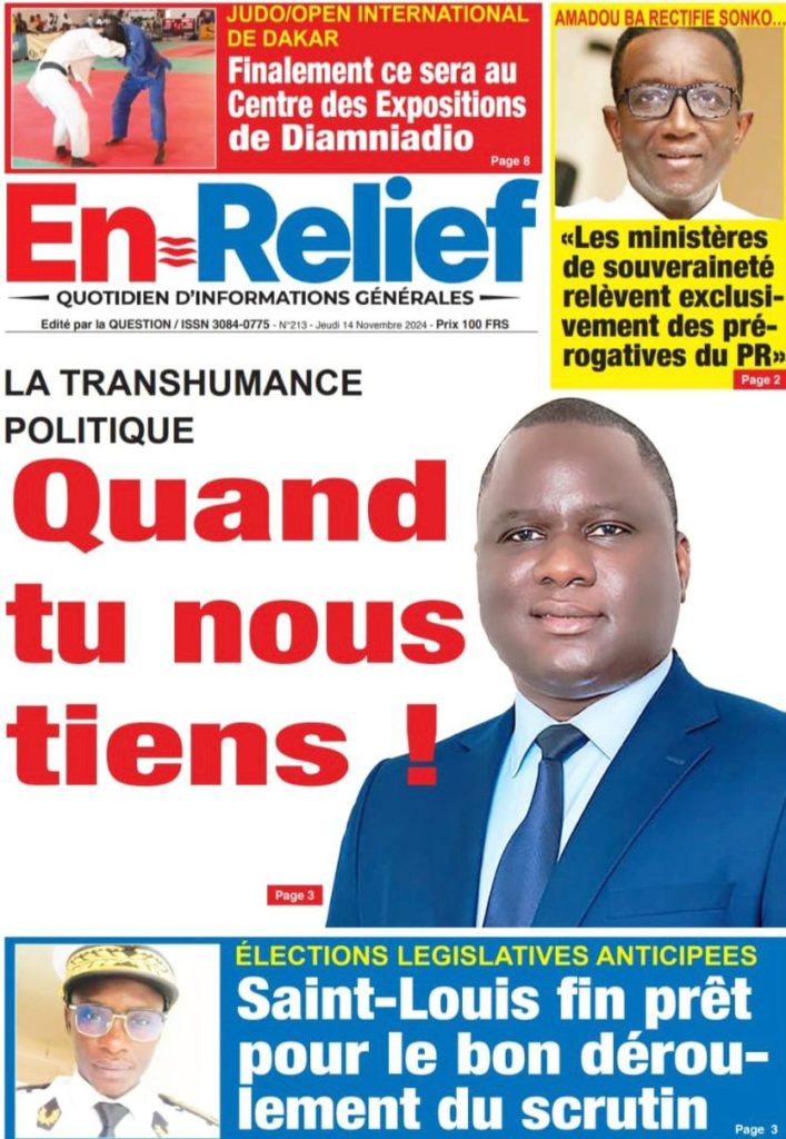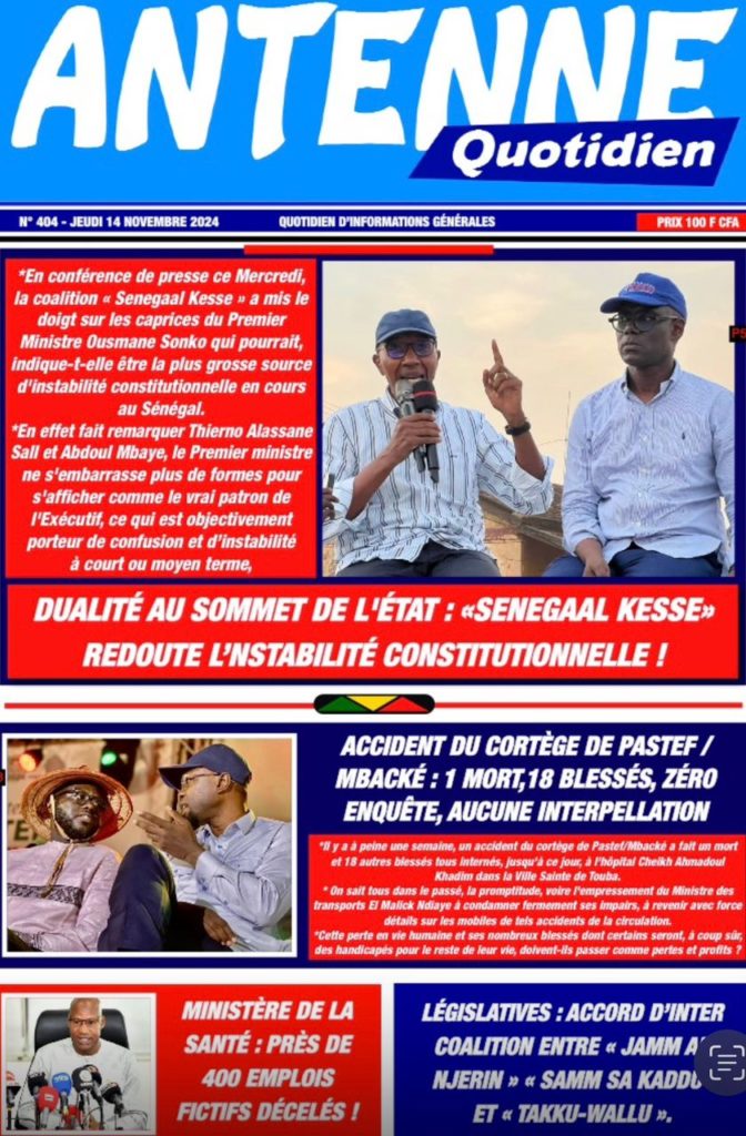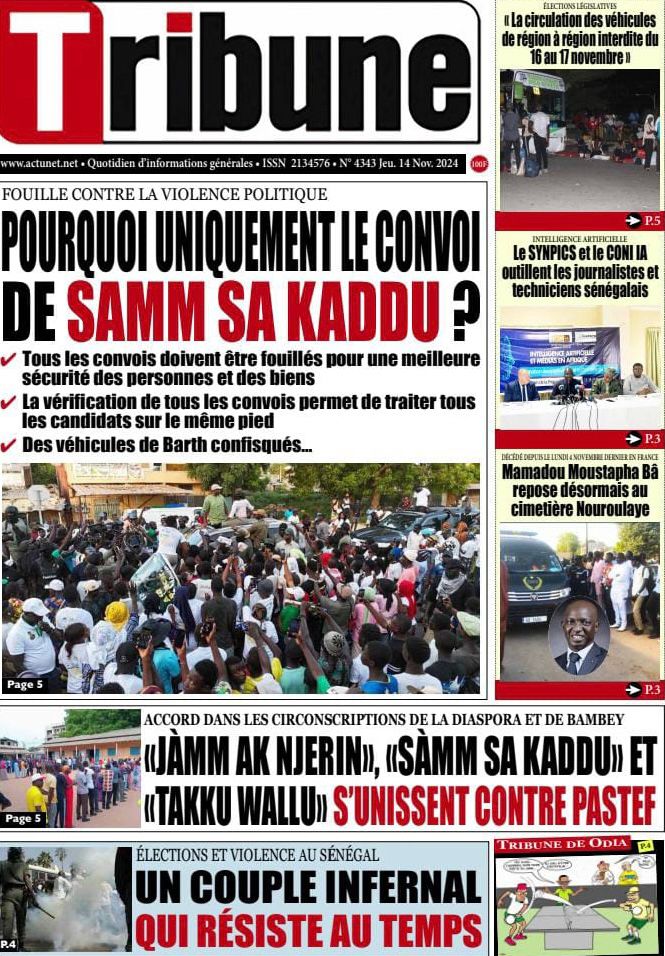 " /> La Une des Quotidiens Nationaux du 14 Novembre 2024 Publié le 14 Nov, 2024 À DÉCOUVRIR Les Unes des quotidiens nationaux du 29 octobre 2025 29 Oct, 2025 La Rédaction de SenCaféActu Partager ->