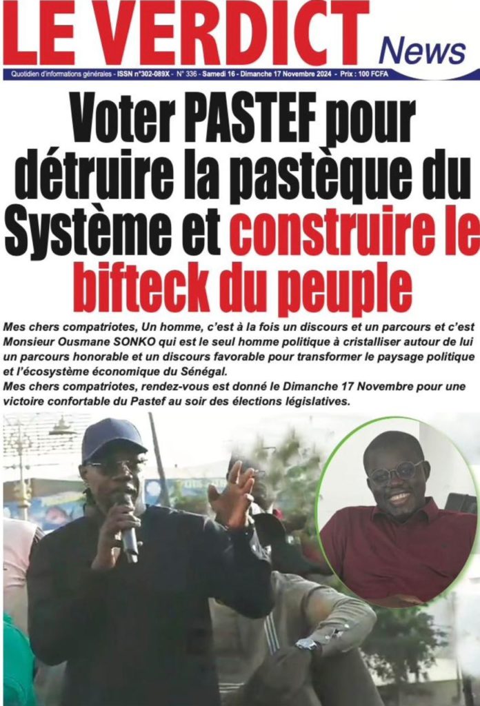 " /> La Une des Quotidiens Nationaux du 16 Novembre 2024 Publié le 16 Nov, 2024 À DÉCOUVRIR Les Unes des quotidiens nationaux du 29 novembre 2025 29 Nov, 2025 La Rédaction de SenCaféActu Partager ->