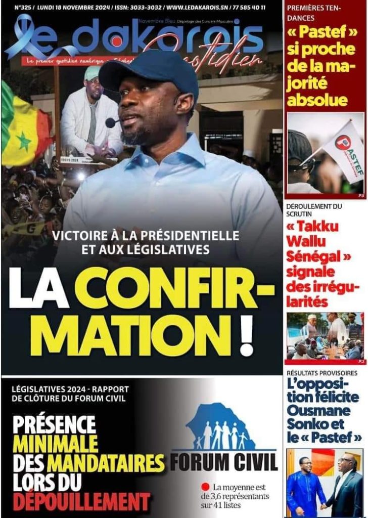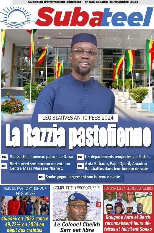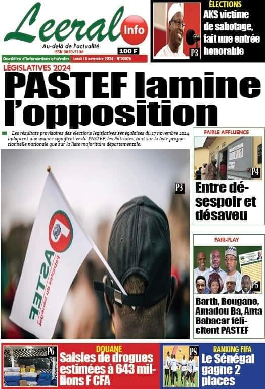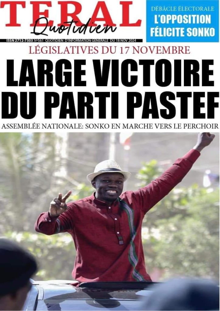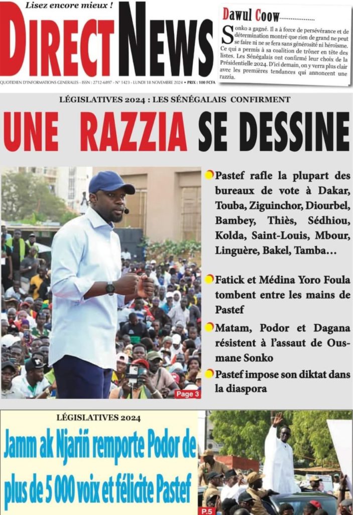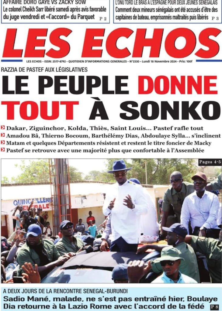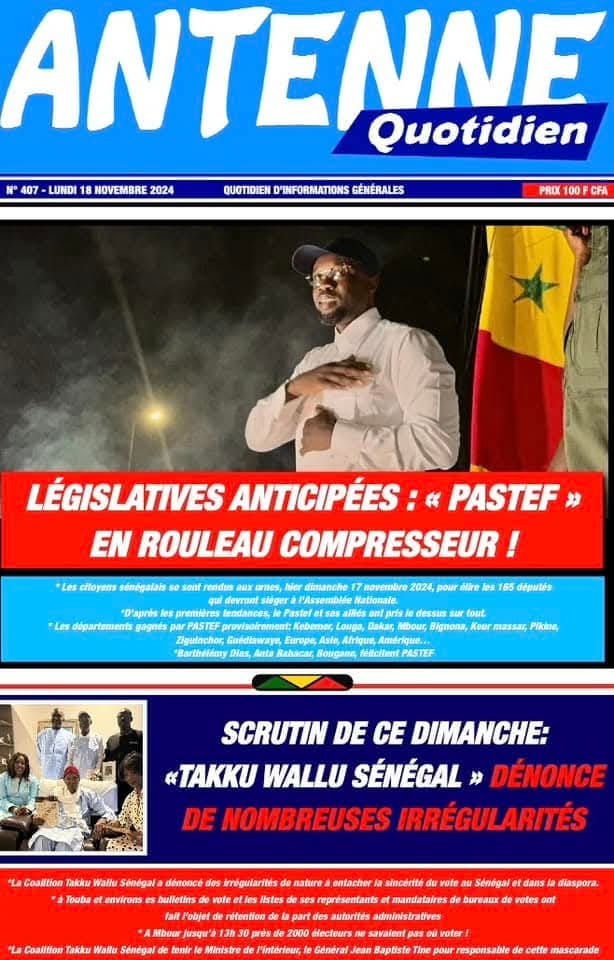 " /> La Une des Quotidiens Nationaux du 18 Novembre 2024 Publié le 18 Nov, 2024 À DÉCOUVRIR Les Unes des quotidiens nationaux du 10 novembre 2025 10 Nov, 2025 La Rédaction de SenCaféActu Partager ->