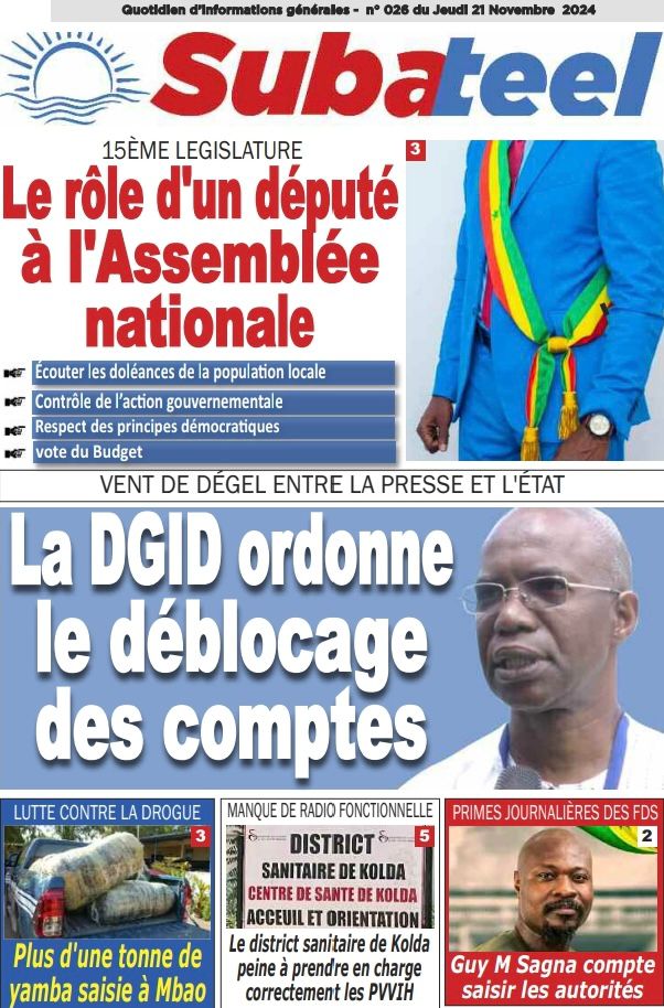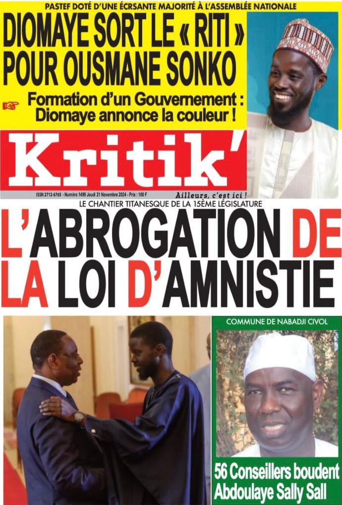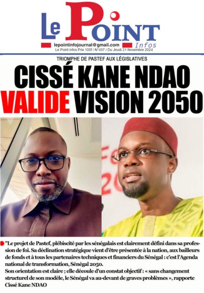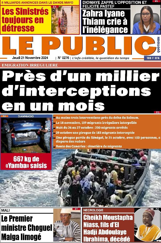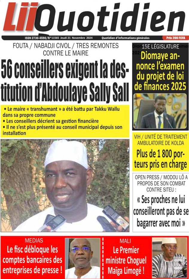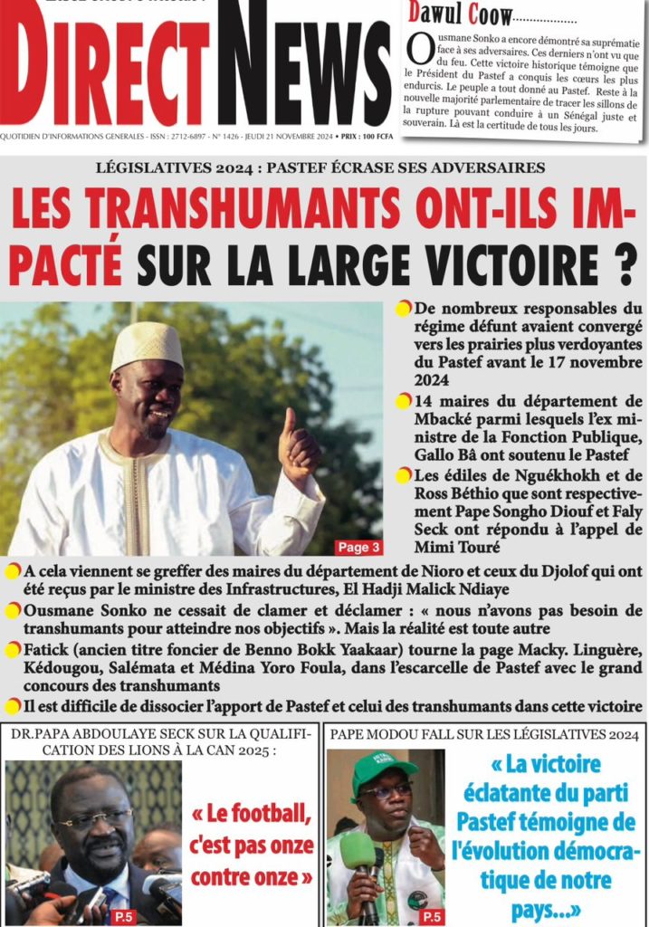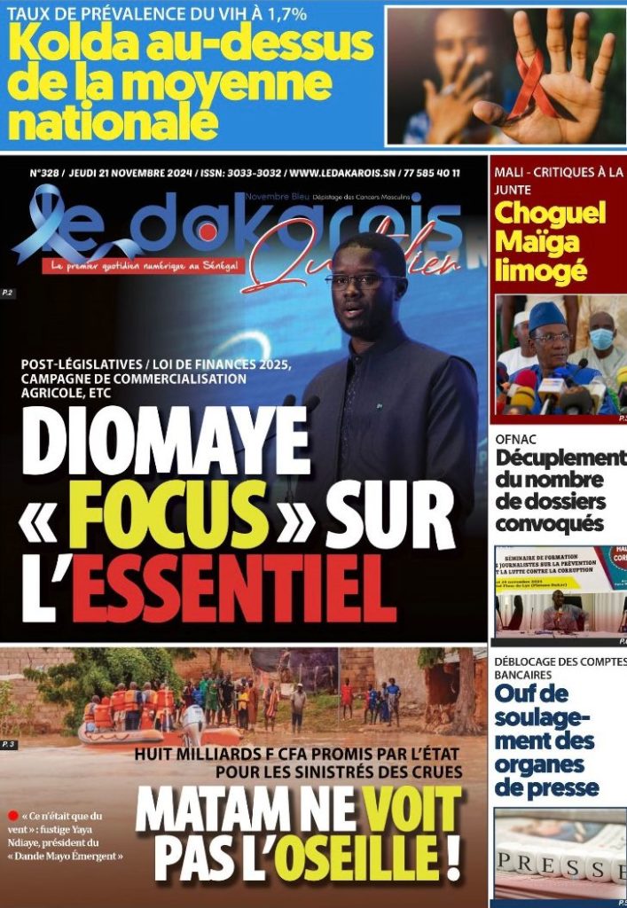 " /> La Une des Quotidiens Nationaux du 21 Novembre 2024 Publié le 21 Nov, 2024 À DÉCOUVRIR Les Unes des quotidiens nationaux du 03 novembre 2025 3 Nov, 2025 La Rédaction de SenCaféActu Partager ->
