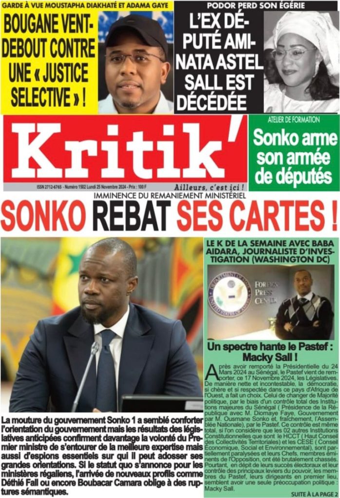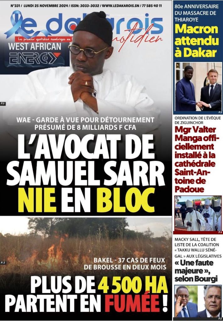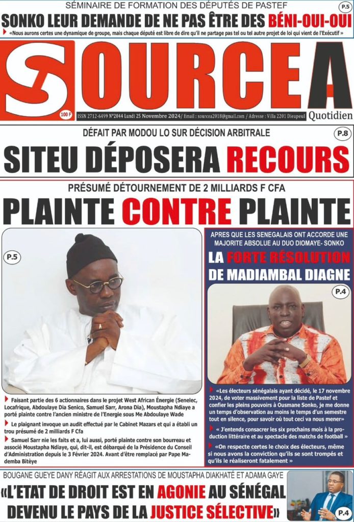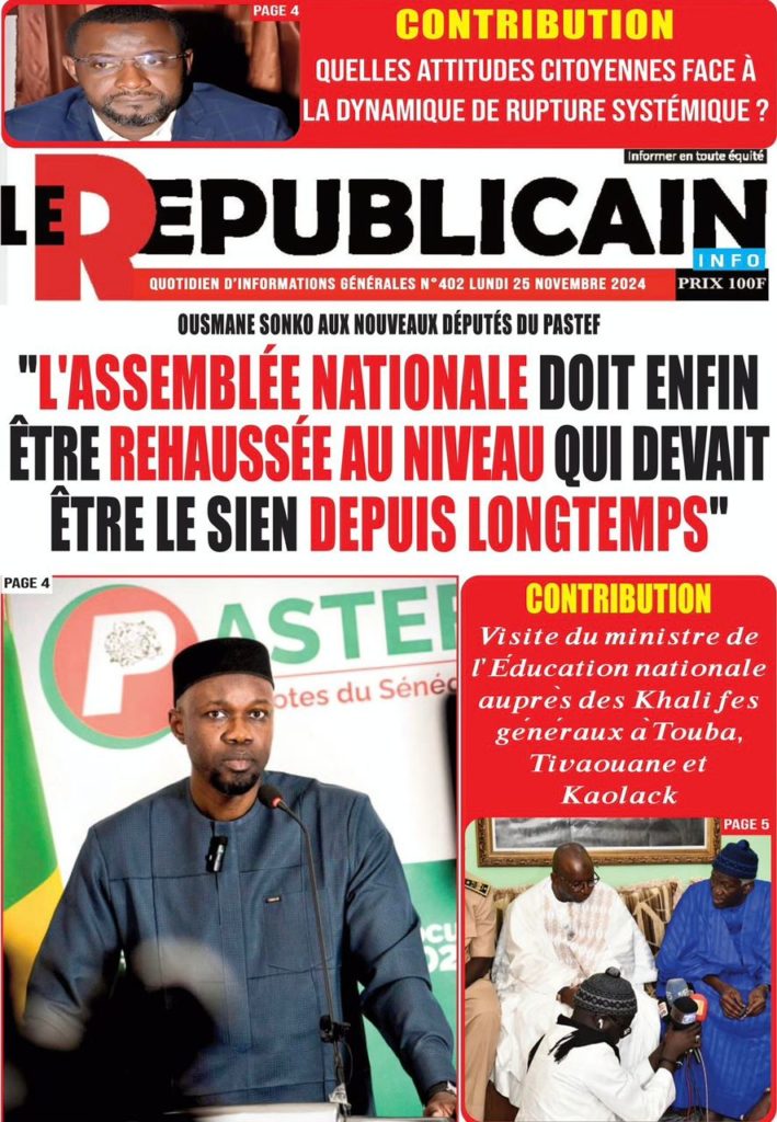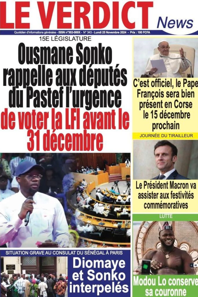 " /> La Une des Quotidiens Nationaux du 25 Novembre 2024 Publié le 25 Nov, 2024 À DÉCOUVRIR Les Unes des quotidiens nationaux du 29 novembre 2025 29 Nov, 2025 La Rédaction de SenCaféActu Partager ->