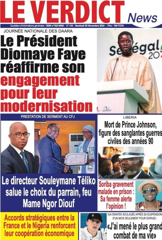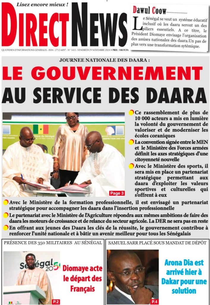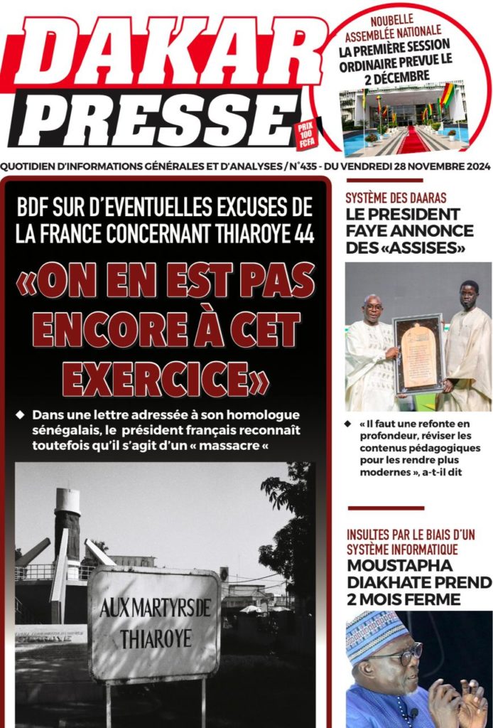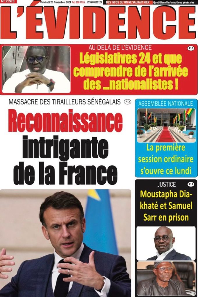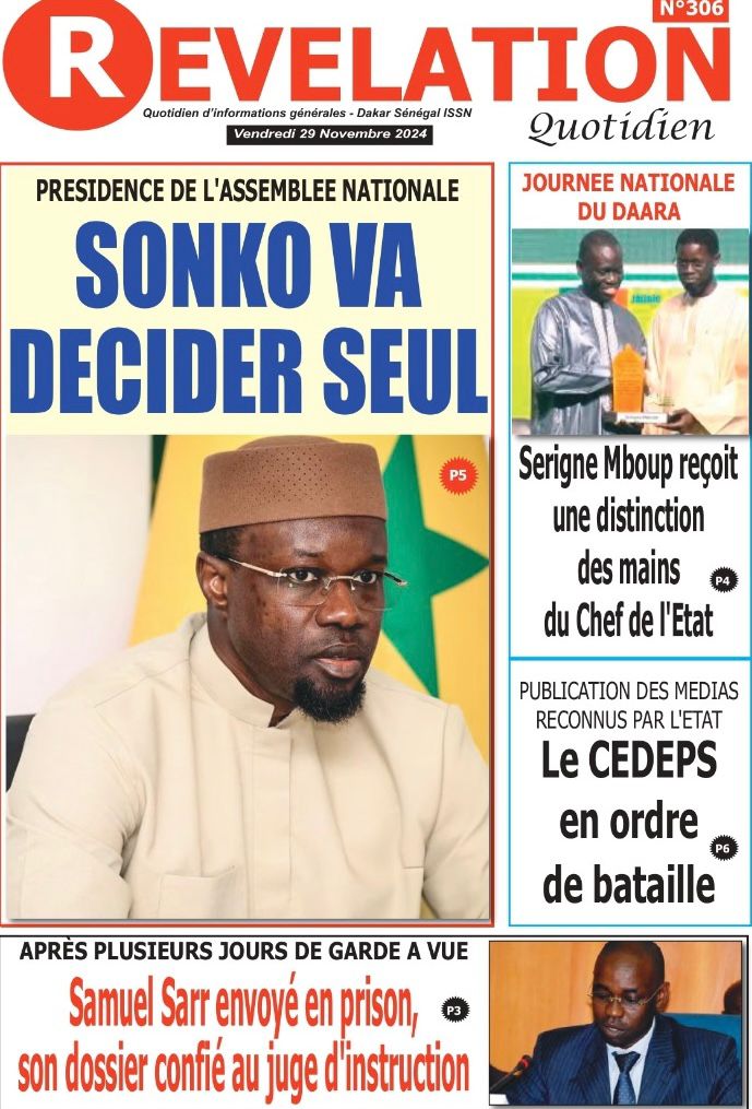 " /> La Une des Quotidiens Nationaux du 29 Novembre 2024 Publié le 29 Nov, 2024 À DÉCOUVRIR Les Unes des quotidiens nationaux du 24 octobre 2025 24 Oct, 2025 La Rédaction de SenCaféActu Partager ->