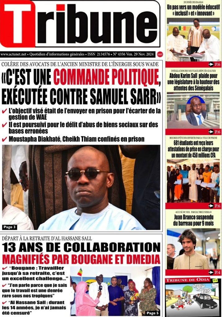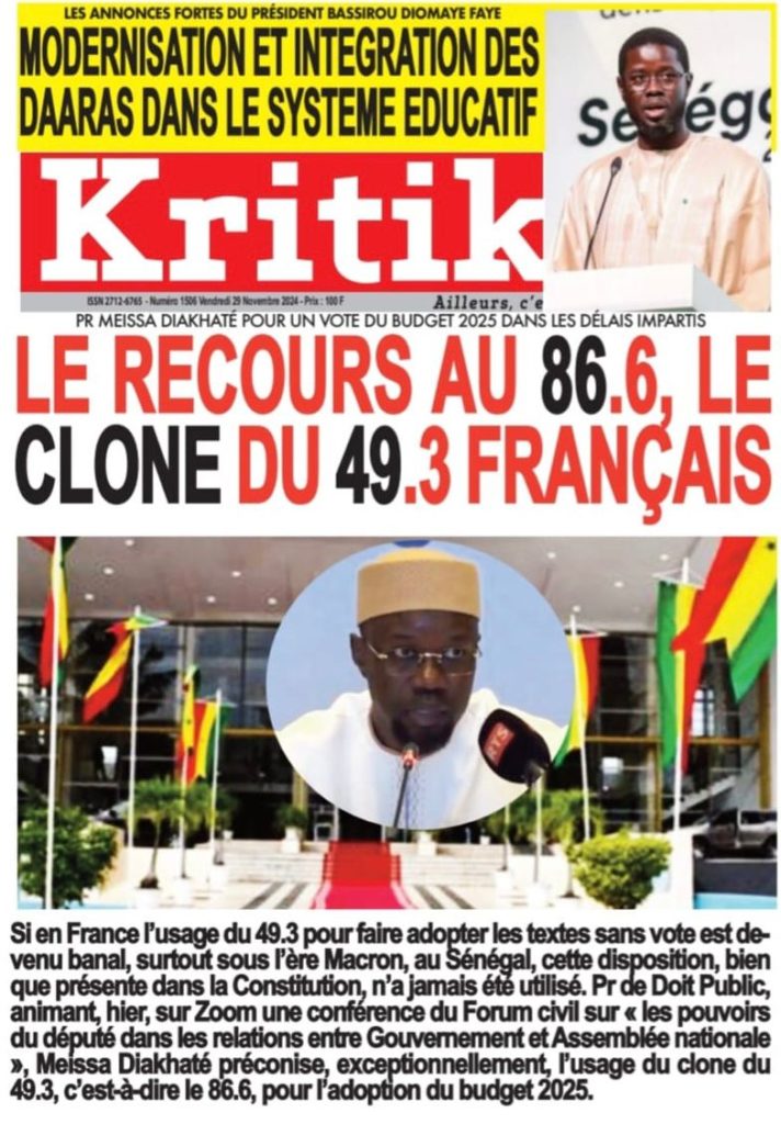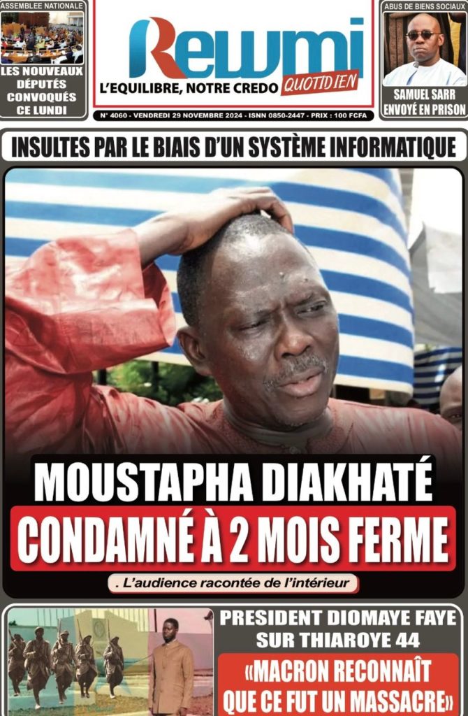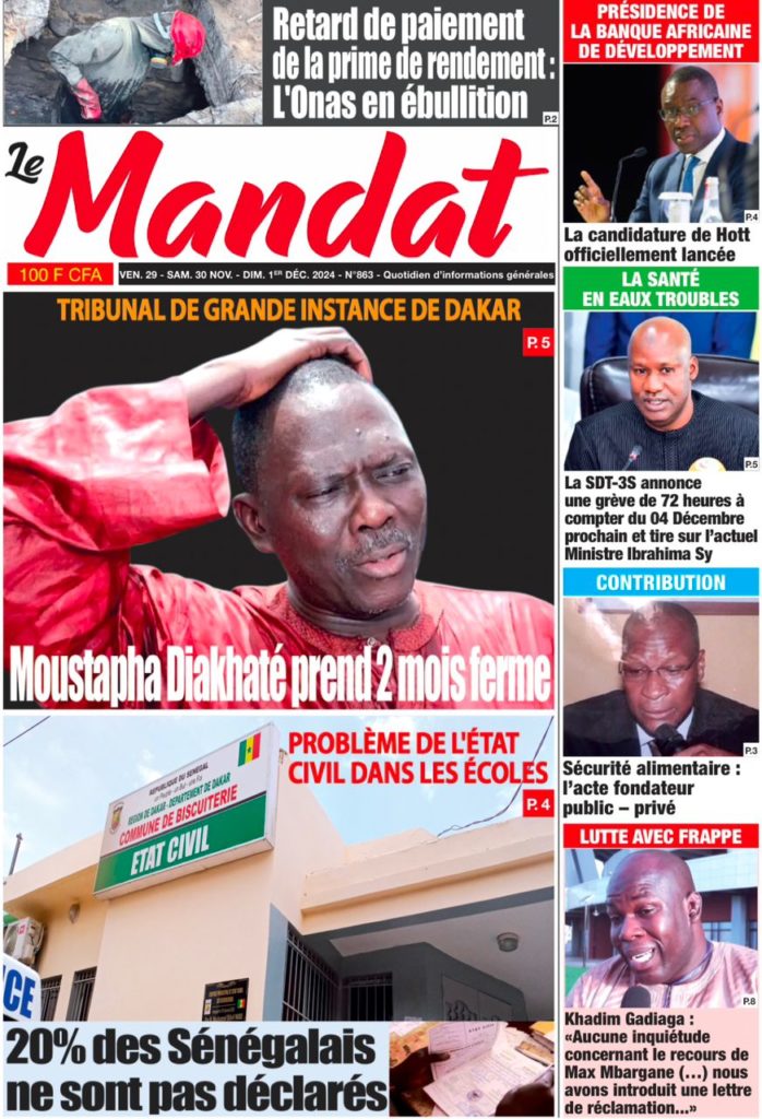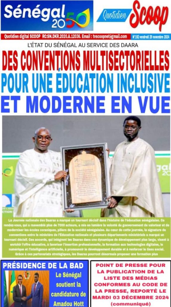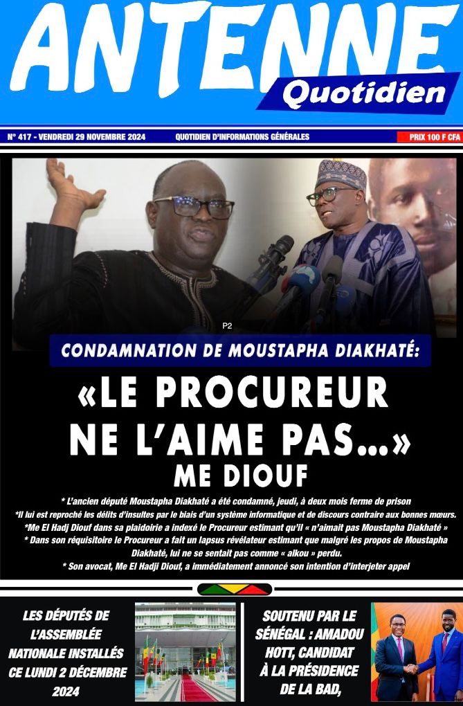 " /> La Une des Quotidiens Nationaux du 29 Novembre 2024 Publié le 29 Nov, 2024 À DÉCOUVRIR Les Unes des quotidiens nationaux du 24 octobre 2025 24 Oct, 2025 La Rédaction de SenCaféActu Partager ->