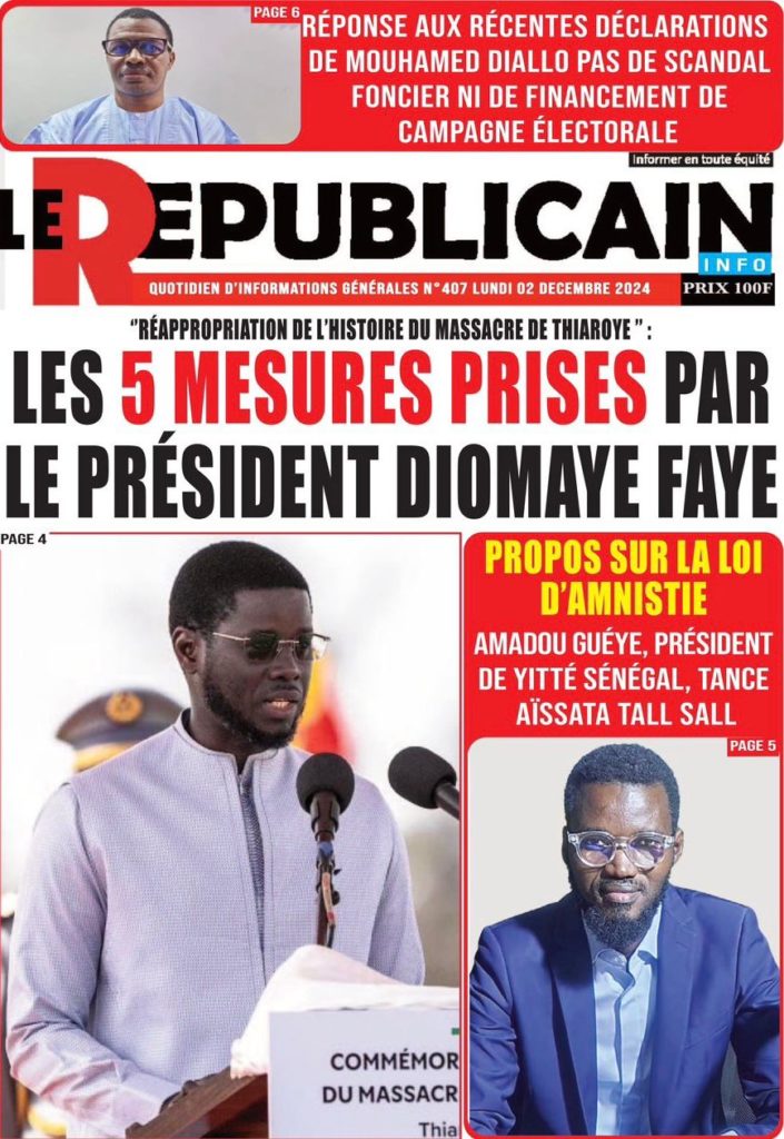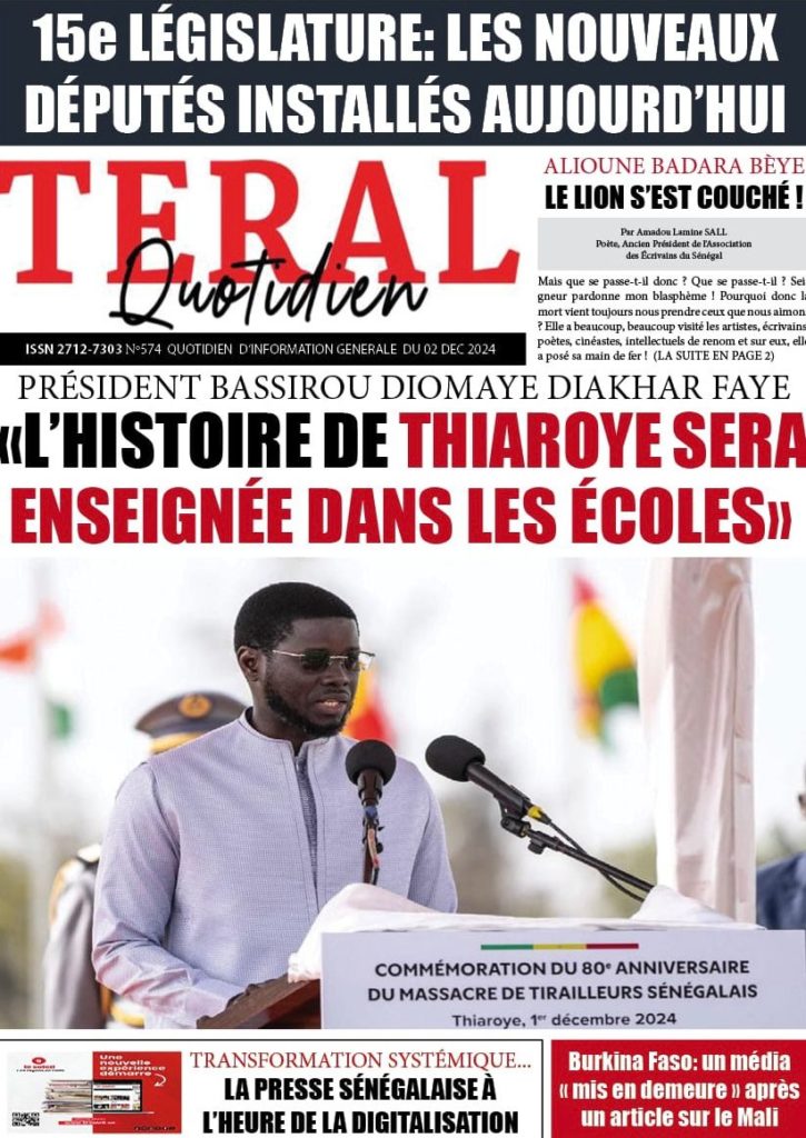 " /> La Une des Quotidiens Nationaux du 02 Décembre 2024 Publié le 2 Déc, 2024 À DÉCOUVRIR Les Unes des quotidiens nationaux du 13 novembre 2025 13 Nov, 2025 La Rédaction de SenCaféActu Partager ->