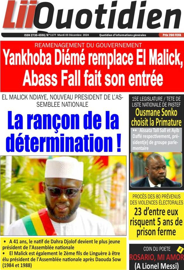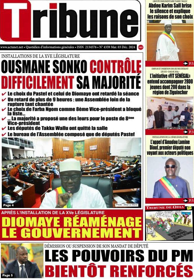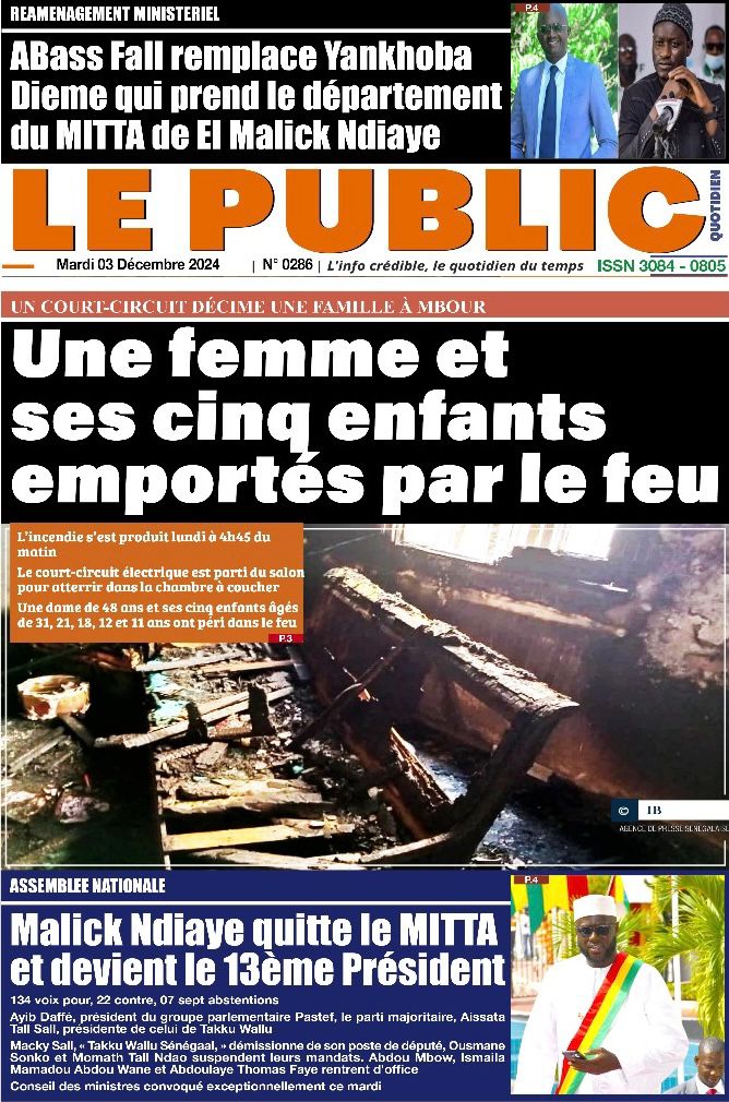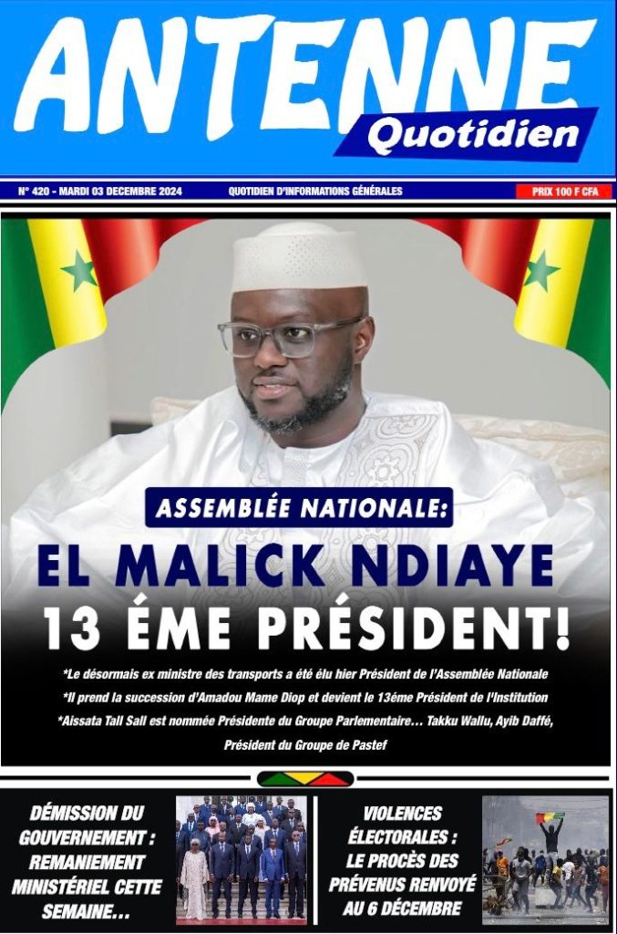 " /> La Une des Quotidiens Nationaux du 03 Décembre 2024 Publié le 3 Déc, 2024 À DÉCOUVRIR Les Unes des quotidiens nationaux du 31 octobre 2025 31 Oct, 2025 La Rédaction de SenCaféActu Partager ->