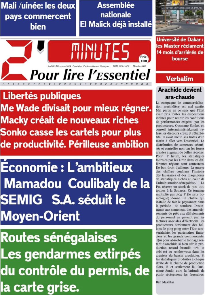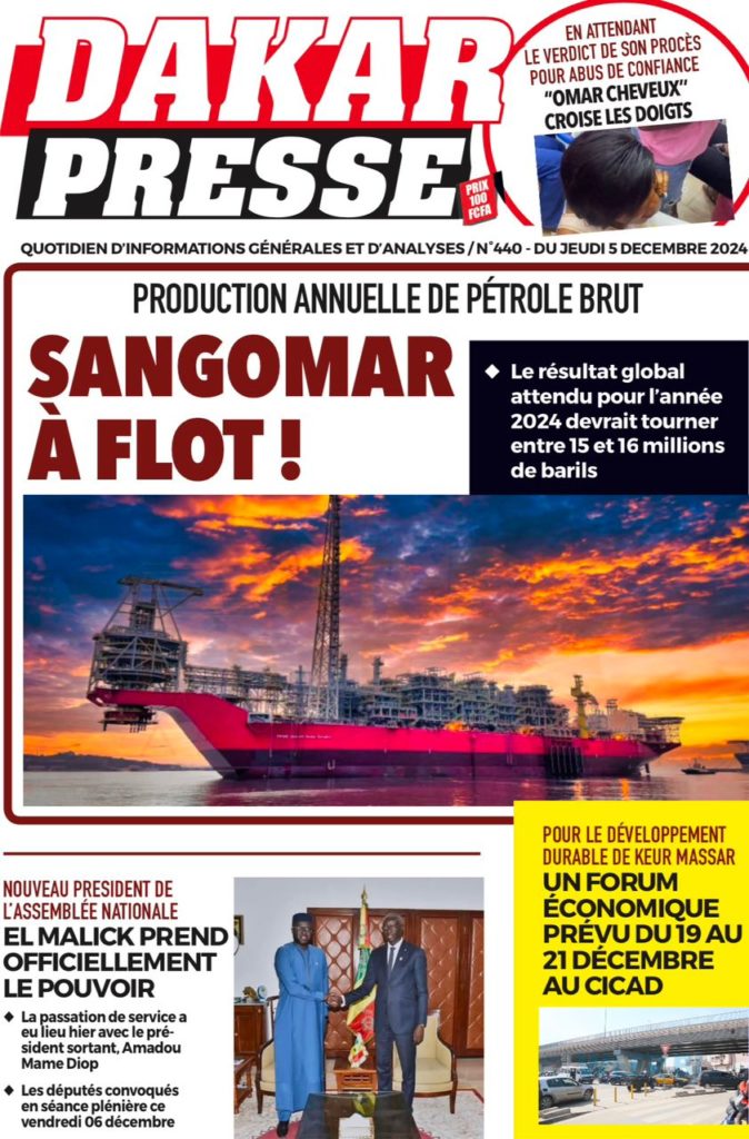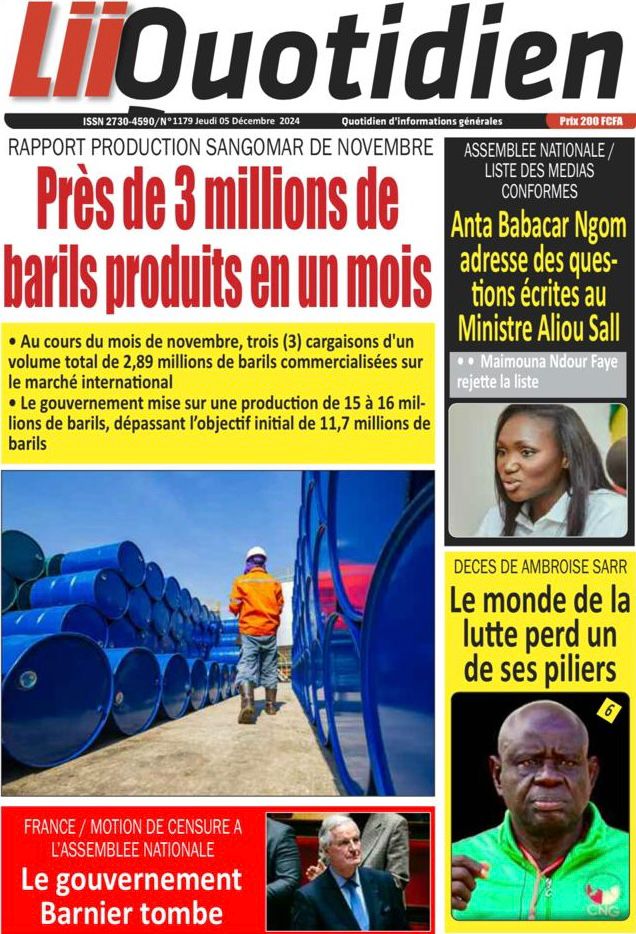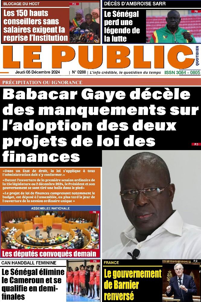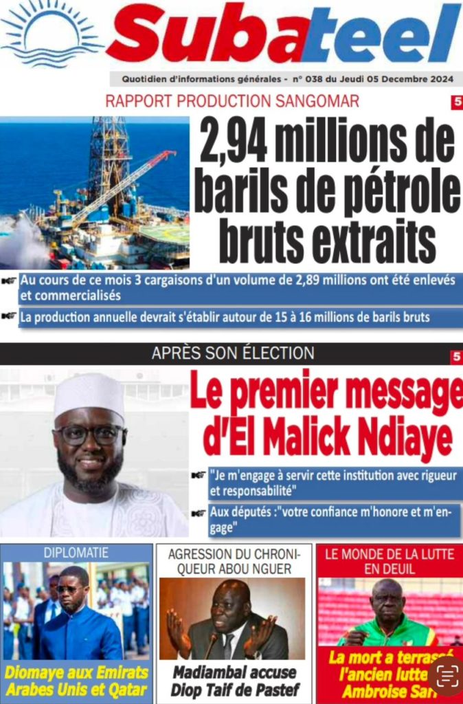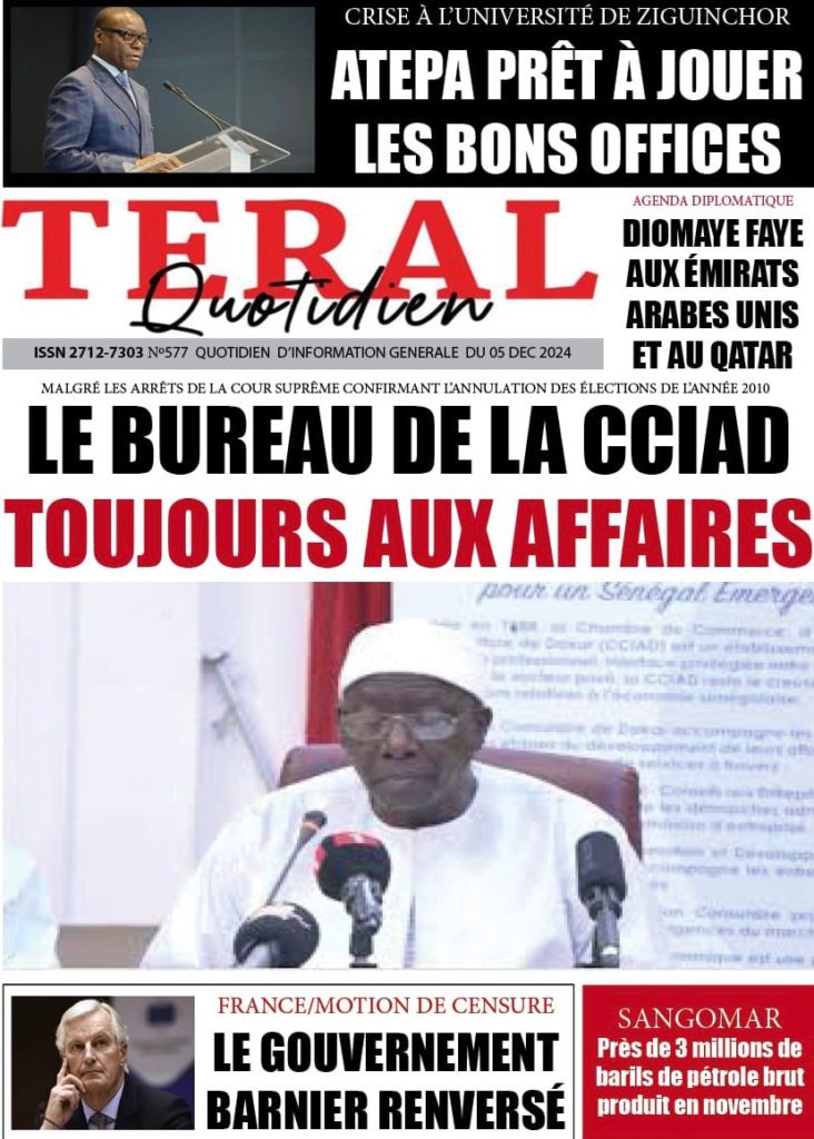 " /> La Une des Quotidiens Nationaux du 05 Décembre 2024 Publié le 5 Déc, 2024 À DÉCOUVRIR Les Unes des quotidiens nationaux du 06 novembre 2025 6 Nov, 2025 La Rédaction de SenCaféActu Partager ->