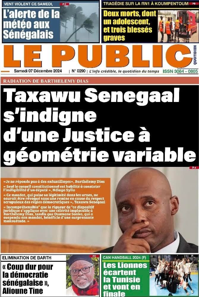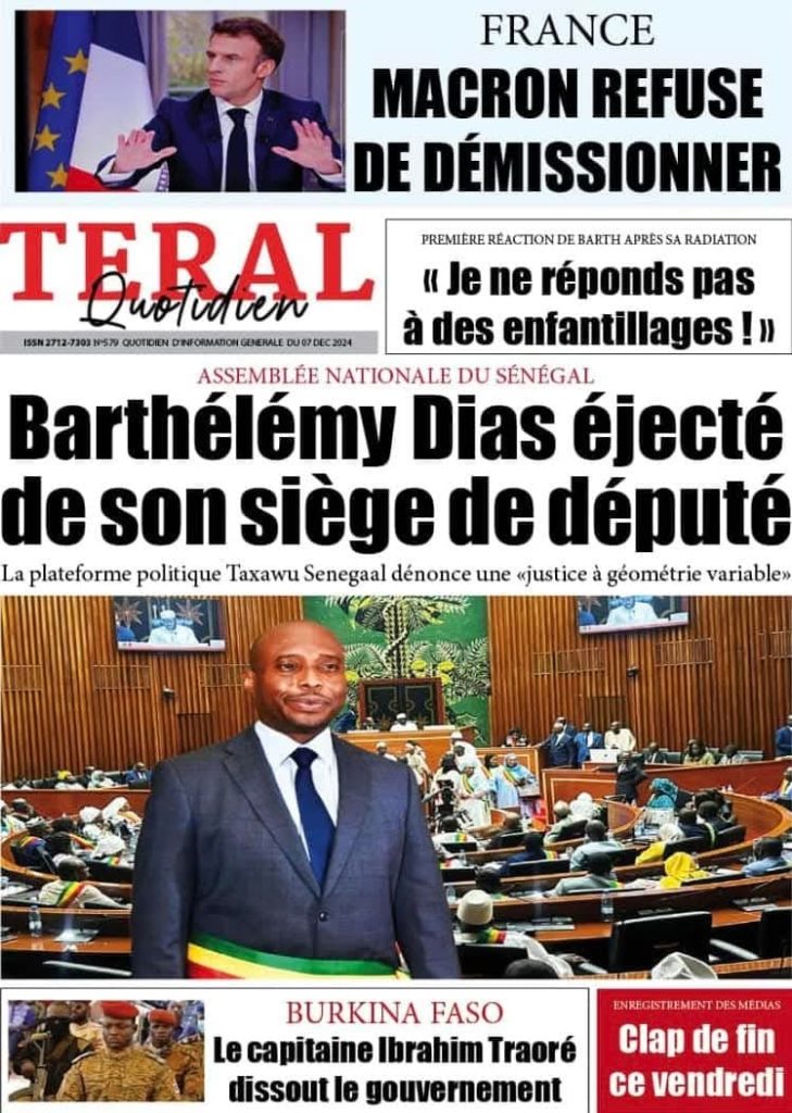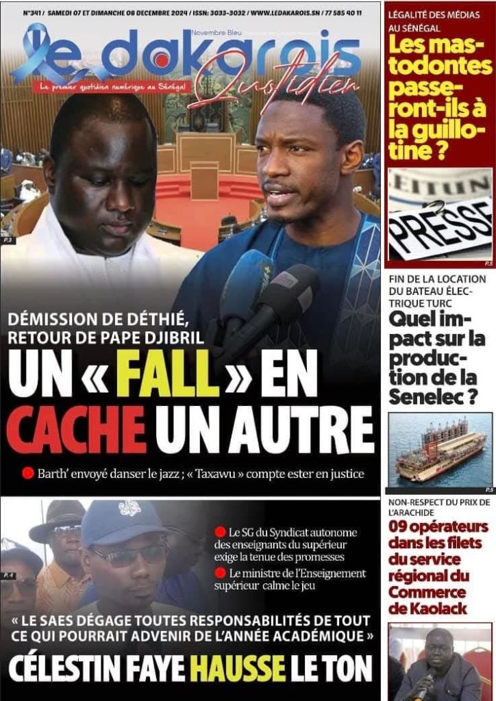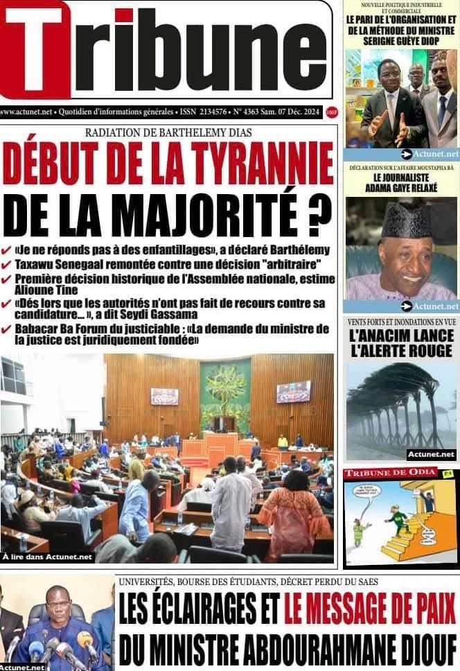 " /> La Une des Quotidiens Nationaux du 07 Décembre 2024 Publié le 7 Déc, 2024 À DÉCOUVRIR Les Unes des quotidiens nationaux du 13 novembre 2025 13 Nov, 2025 La Rédaction de SenCaféActu Partager ->