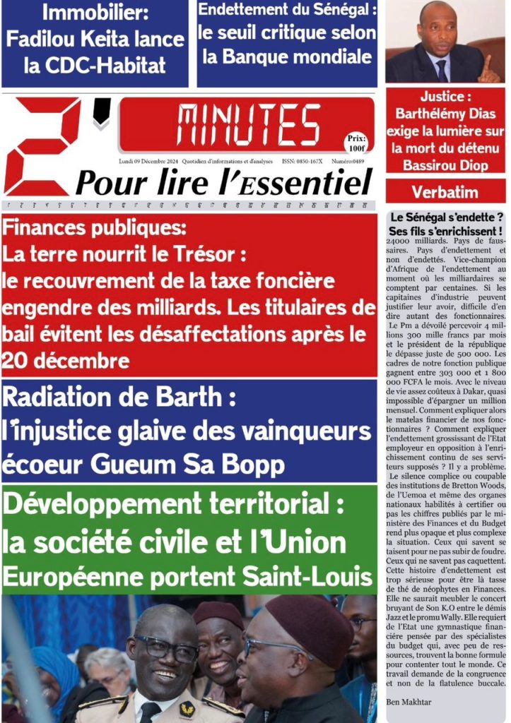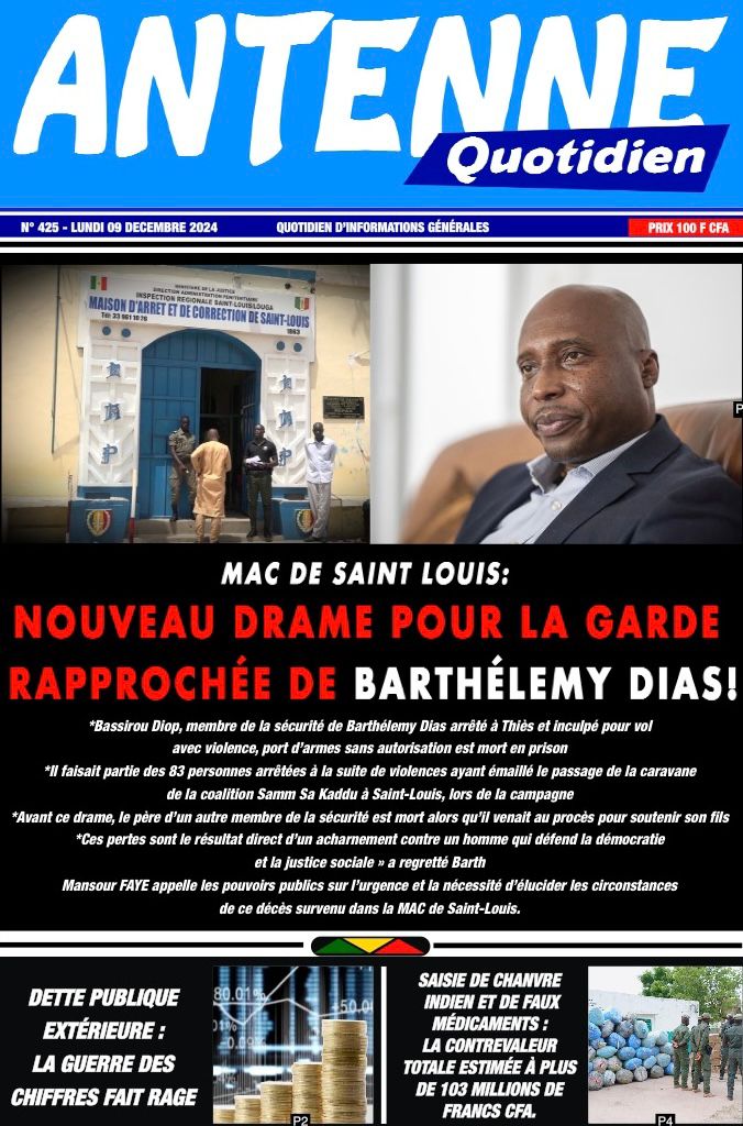 " /> La Une des Quotidiens Nationaux du 09 Décembre 2024 Publié le 9 Déc, 2024 À DÉCOUVRIR Les Unes des quotidiens nationaux du 10 novembre 2025 10 Nov, 2025 La Rédaction de SenCaféActu Partager ->