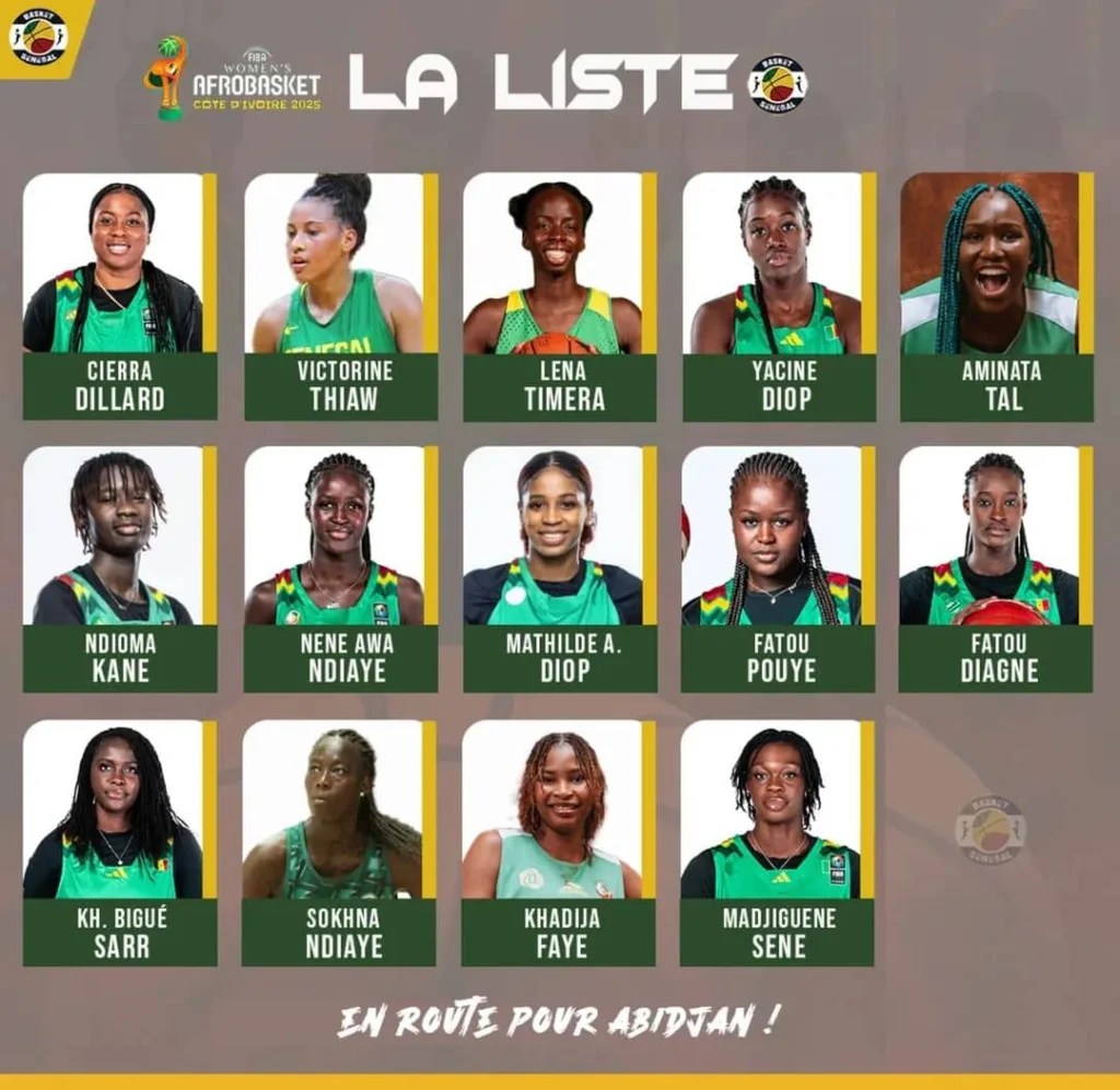 Après une préparation ponctuée par une victoire contre le Soudan du Sud (72-68) et une défaite contre le Mali, les Lionnes visent un retour sur le toit de l’Afrique, dix ans après leur dernier sacre en 2015. Le Sénégal, recordman de l’épreuve avec 11 titres, devra cependant faire face à une concurrence redoutable, notamment du Nigeria, quadruple champion en titre. Le groupe des 12 joueuses est composé de Cierra Dillard et Victorine Thiaw (meneuses), Ndioma Kane, Yacine Diop et Lena Timera (arrières), Fatou Pouye et Néné Awa Ndiaye (ailières), Khadidiatou Bigué Sarr et Mathilde Aicha Diop (ailières fortes), ainsi que Madjiguène Sène, Sokhna Ndiaye et Khadija Faye (pivots).
